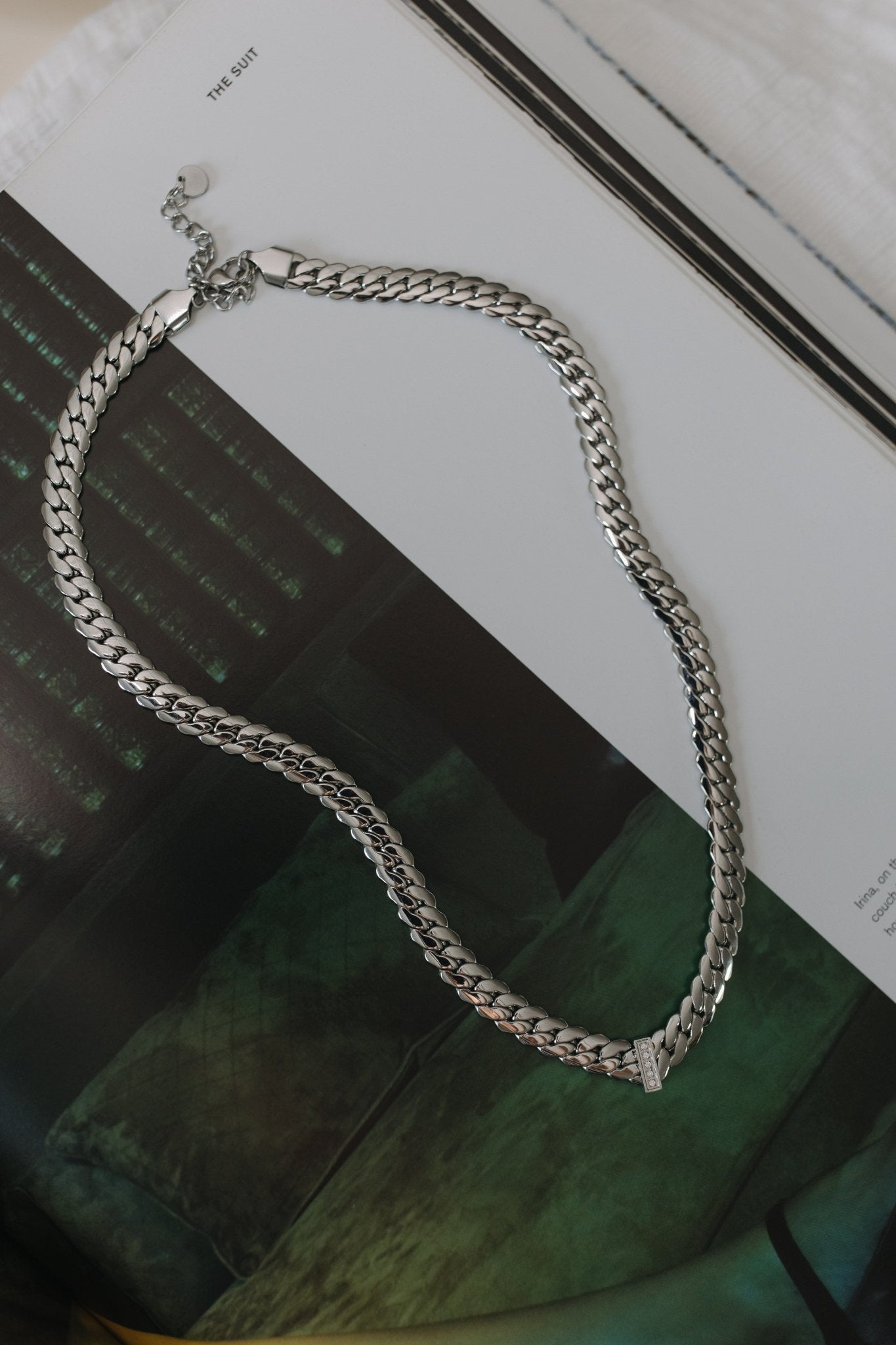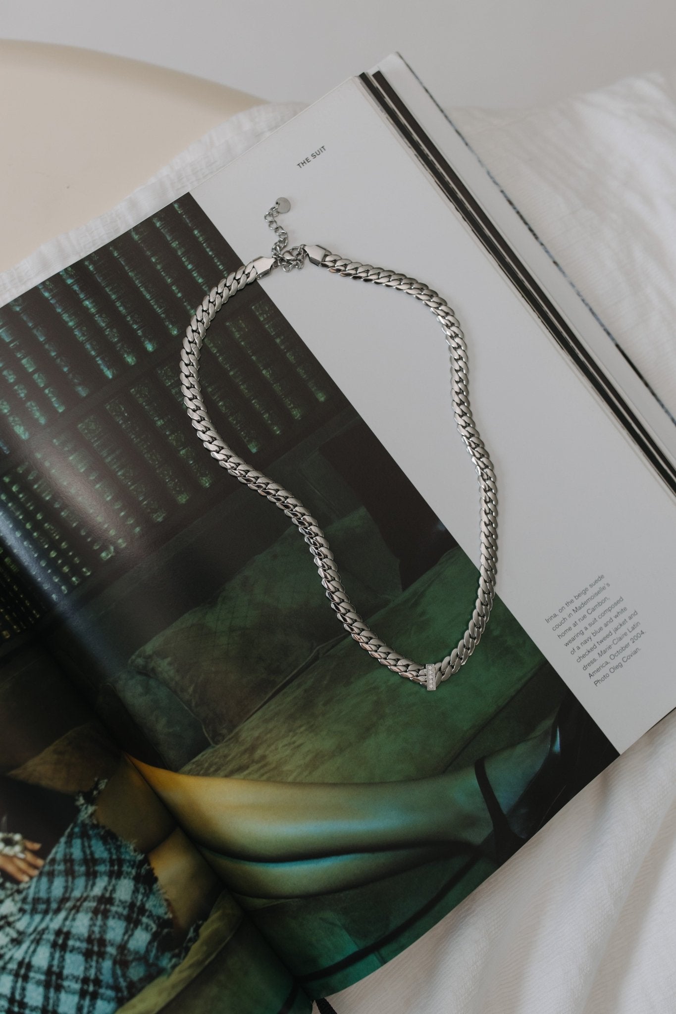 ELODIE WATERPROOF DIAMOND V-NECKLACE MESH CHAIN IN SILVER