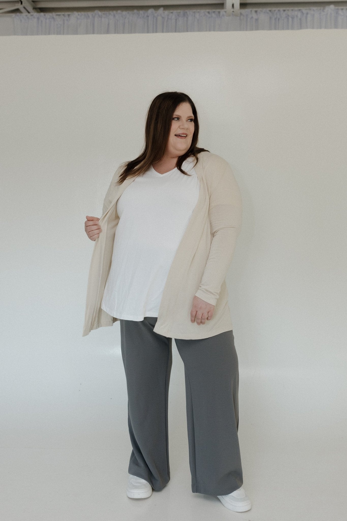 This neutral lightweight cardigan is the ultimate wardrobe essential—polished enough for the office, comfy enough for lounging, and chic enough for layering with every outfit in your closet.