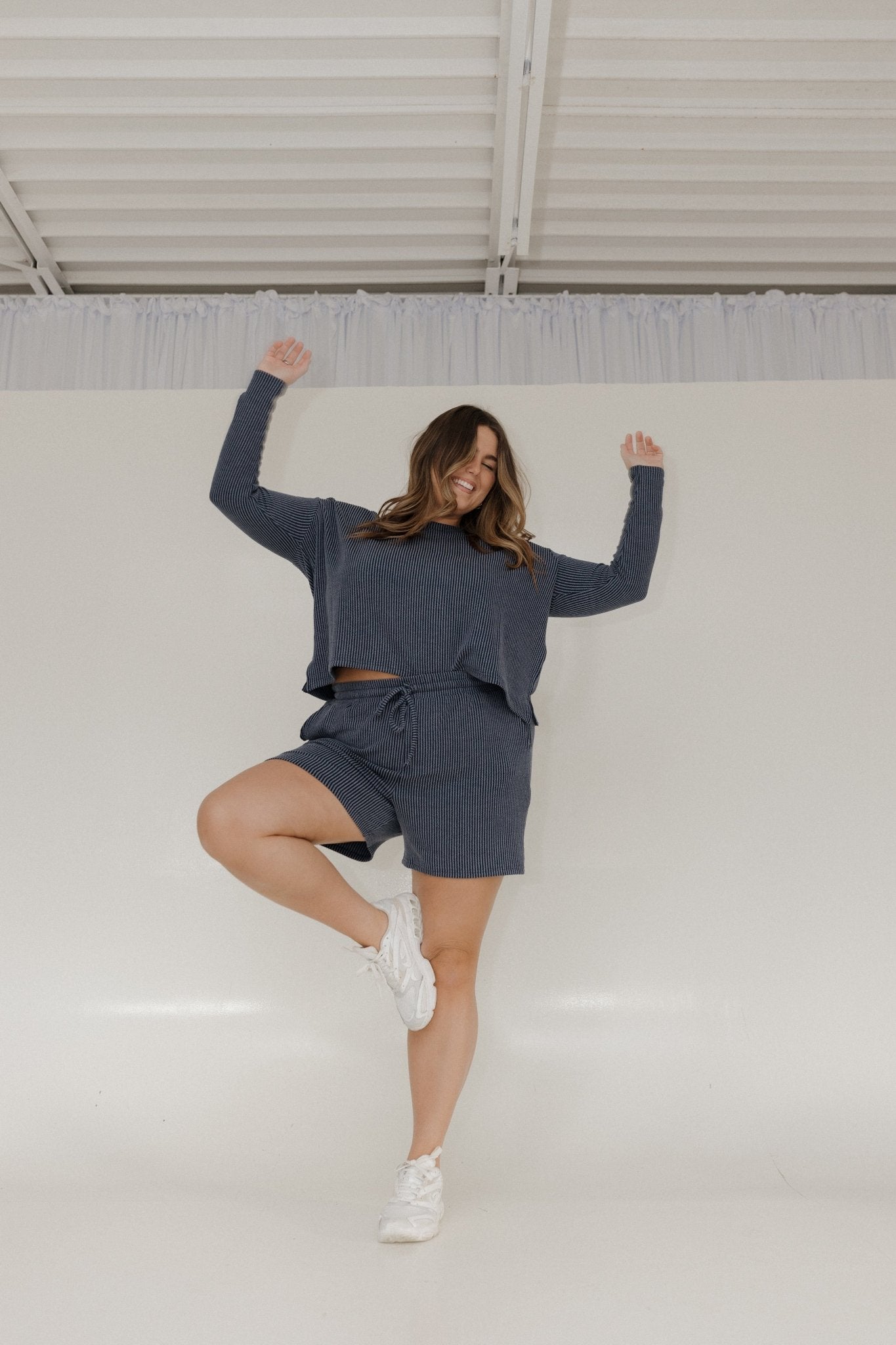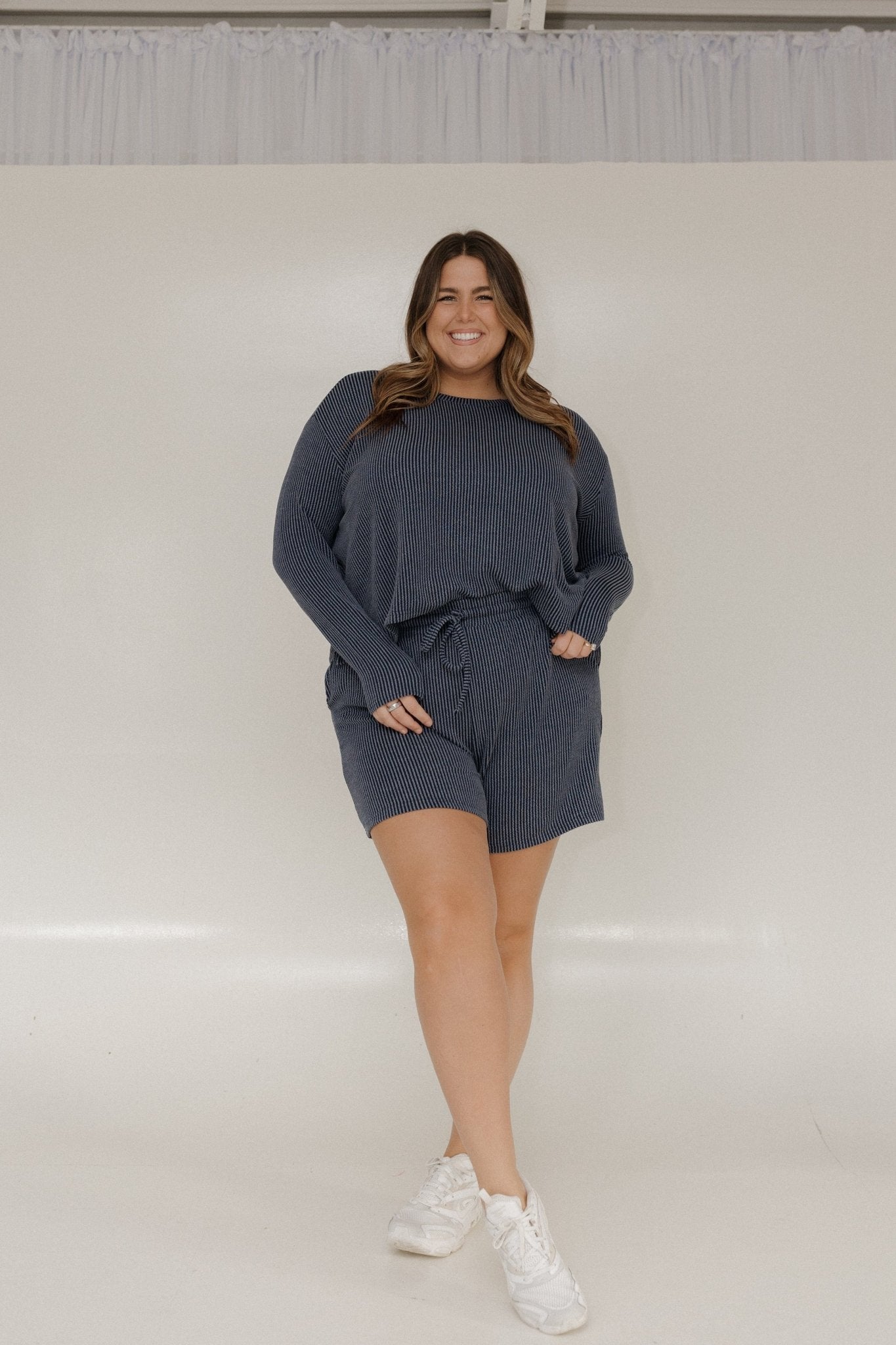 Bring easy elegance to your everyday look with the Luxe Ribbed Tie Front Elastic Waist Shorts in Dark Horizon Blue—where comfort meets effortless style. Crafted from a lightweight, breathable ribbed knit, these shorts offer a flattering drape with just the right amount of stretch for all-day wear.