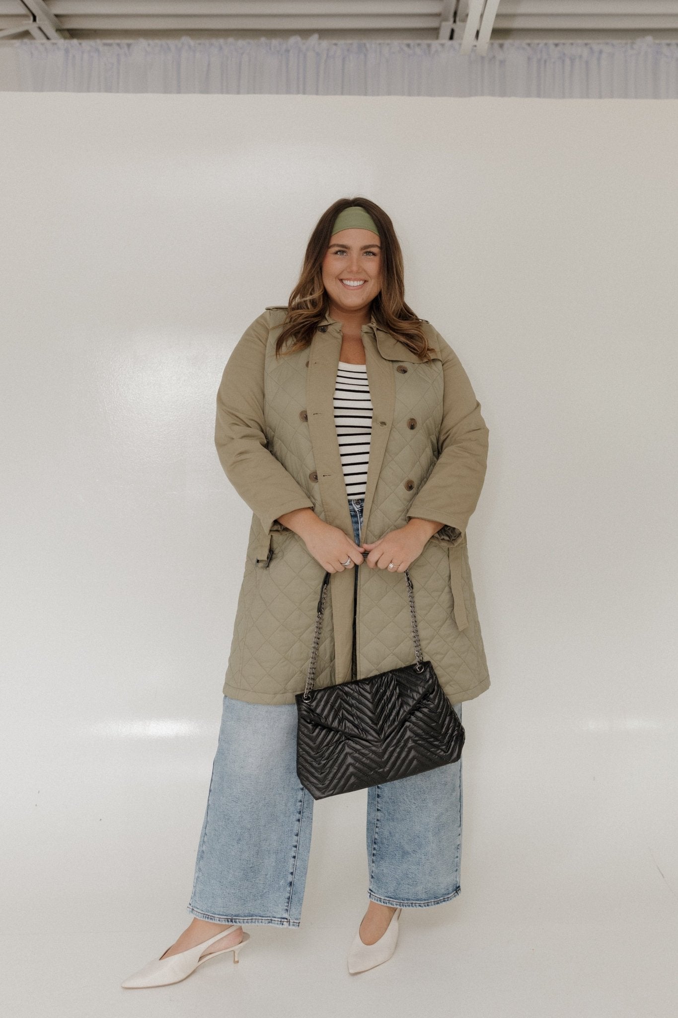 Make an unforgettable impression with our Quilted Trench Coat, a sophisticated twist on the timeless classic. Tailored for mid to plus-size women (sizes 12–24), this coat combines structure, comfort, and elegance in every detail.