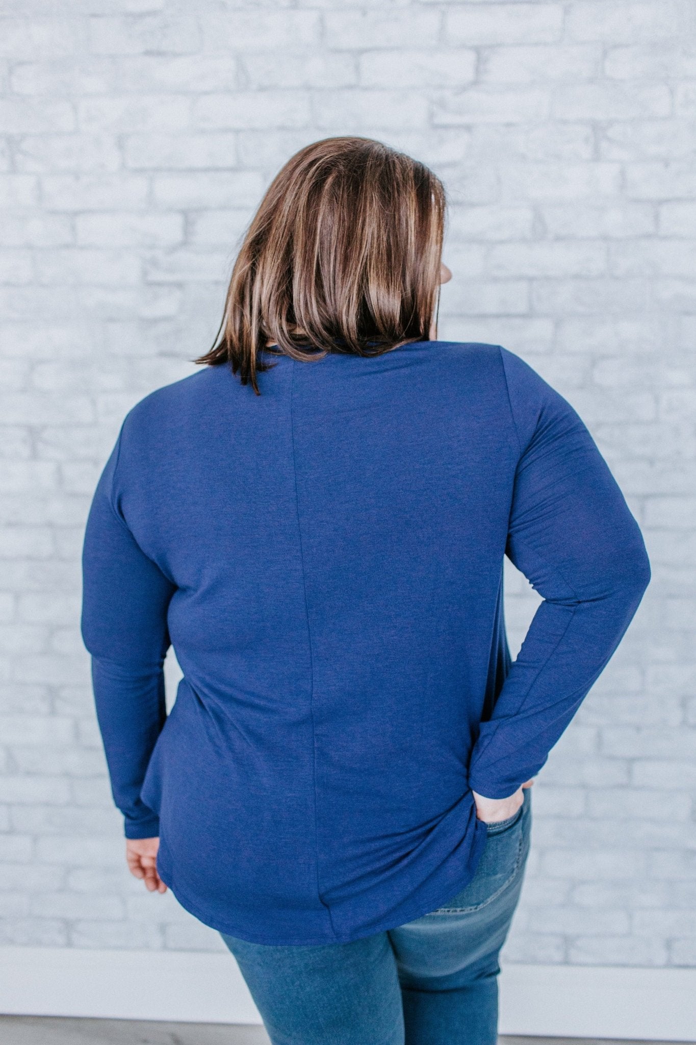 There is nothing better than a great basic tee, and this one has extra magic with its fit and the fabric of it! The great dark blue color pairs with anything and everything! You'll love the v-neckline, long sleeves, tunic length, and super soft knit fabric that flows away from your body. You know you're already dreaming of all the different possibilities you have for this fantastic tee! Fits slim. We recommend grabbing a size up.