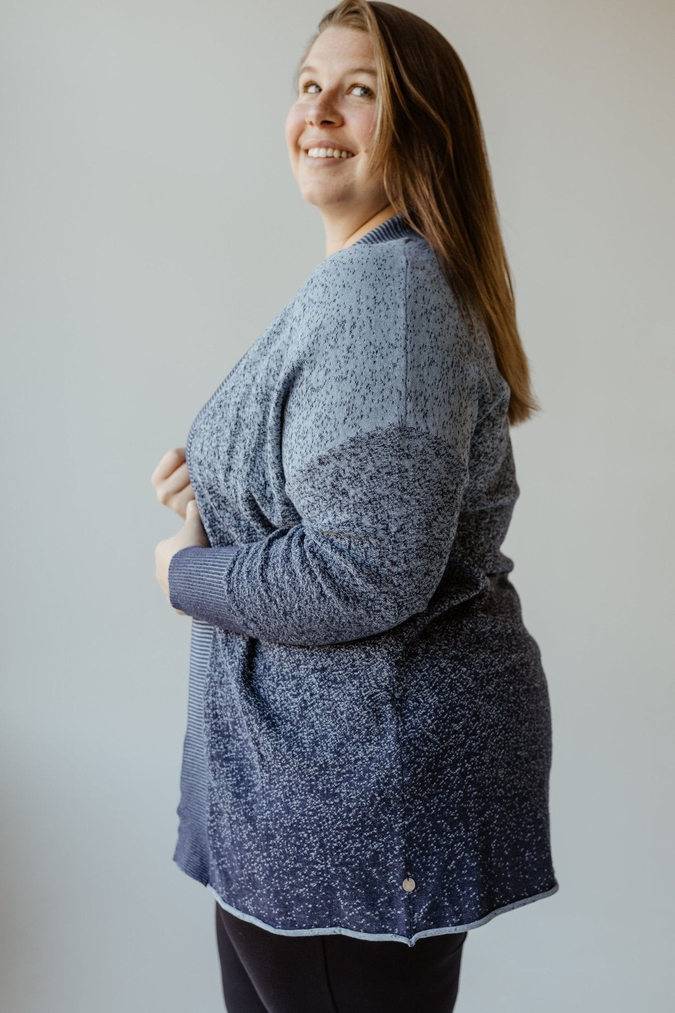 This lightweight cardigan features an ombre texture and a striped collar detail, designed to flatter curves with great weight that will glide over your curves. Crafted in a subtle gradient, the combination of texture and collar detailing makes it the perfect addition to your work wardrobe. Fits true to size. Cara is wearing a size 16. Want more information about the model? Visit our Lovely Models page.