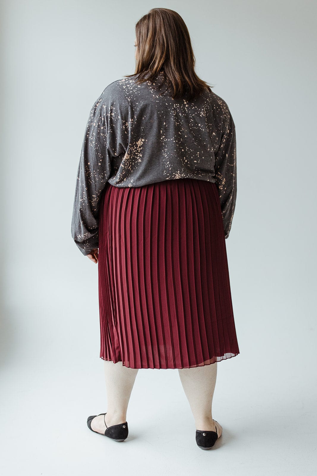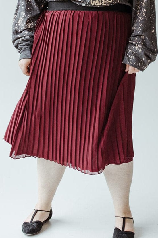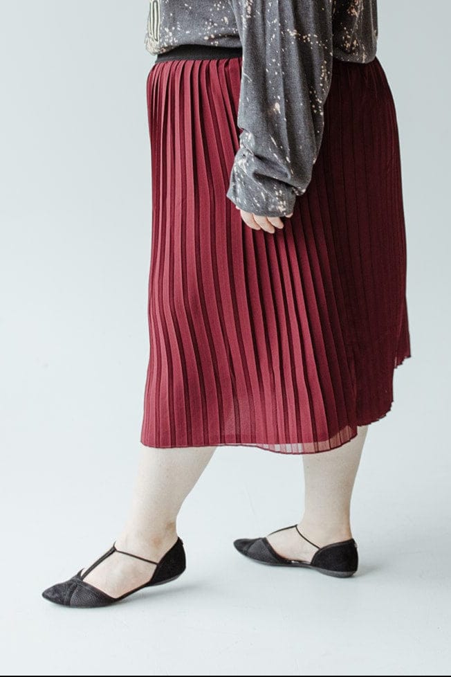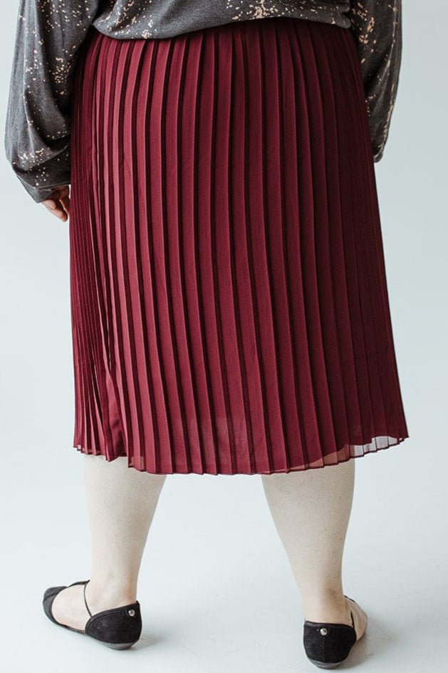 PLEATED MIDI LENGTH CHIFFON SKIRT IN BURGUNDY-1x