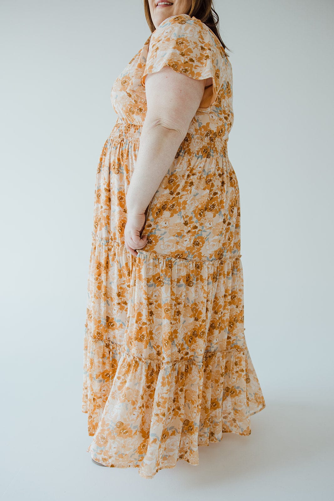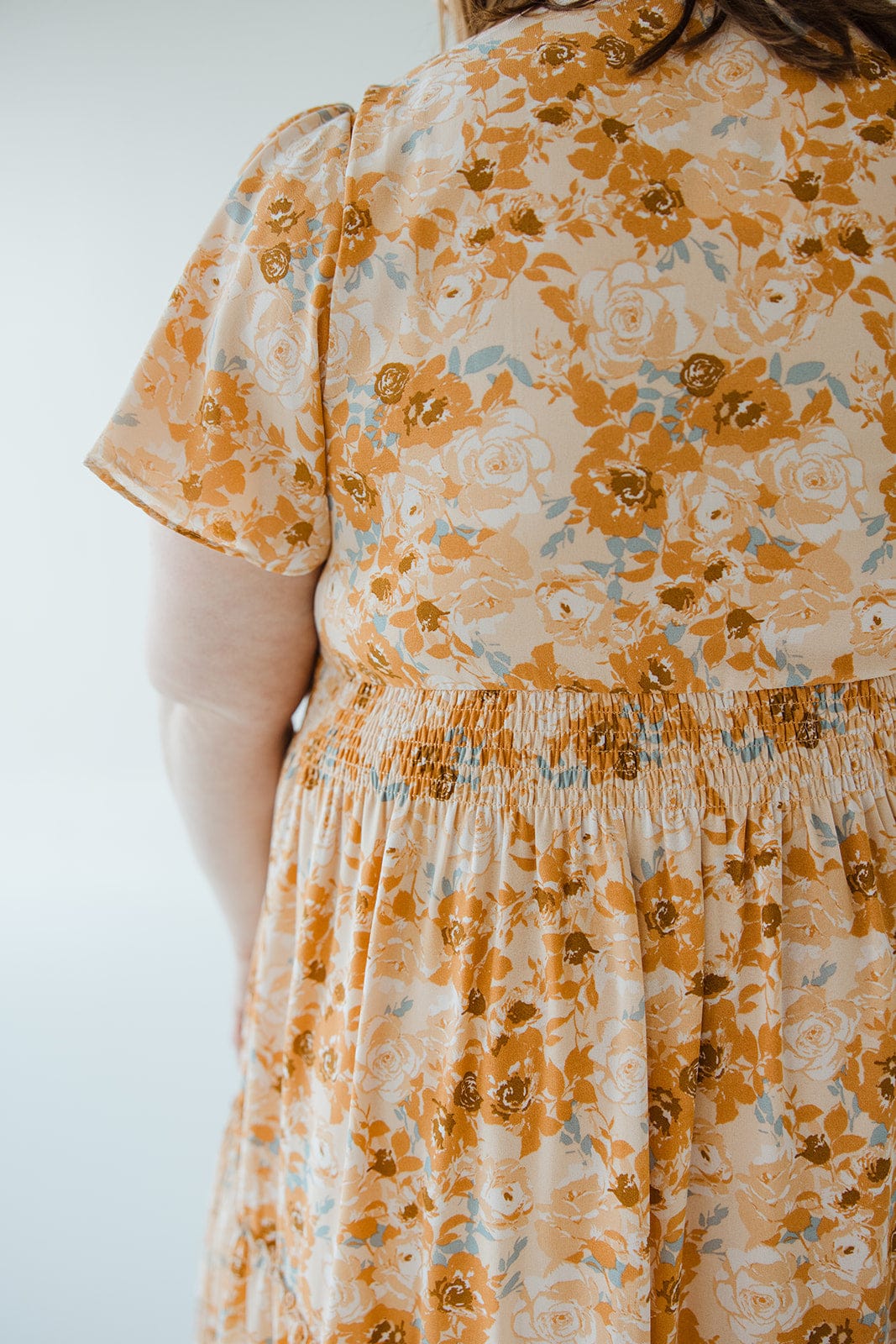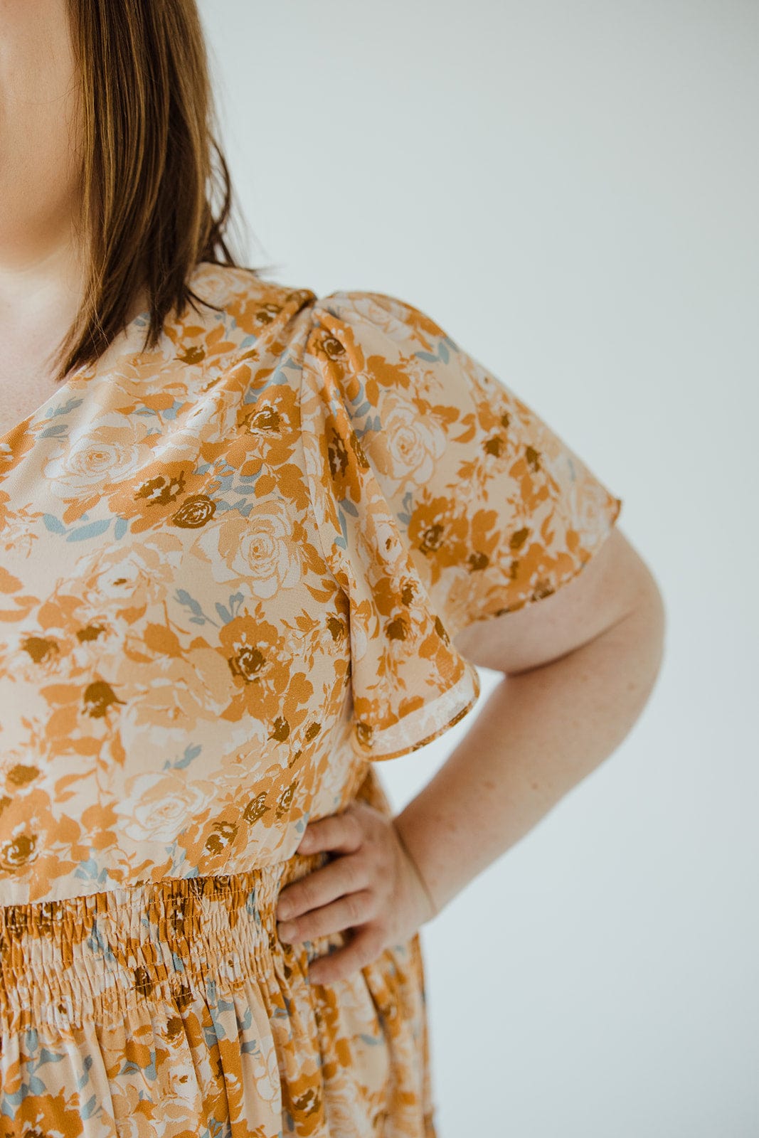 You won't believe how cute you look in this TIERED FLUTTER SLEEVE FLORAL DRESS IN AMBER SUNSET! From the modest v-neck to the tiered skirt, it's perfect for something sweet and sassy. Look no further than the whimsical flutter sleeve and smocked waist to turn heads! Get ready to rock the house in this midi-length cutie! We suggest going up a size from your typical. Stacey is wearing a size 3x. Want more information about the model? Visit our Lovely Models page.