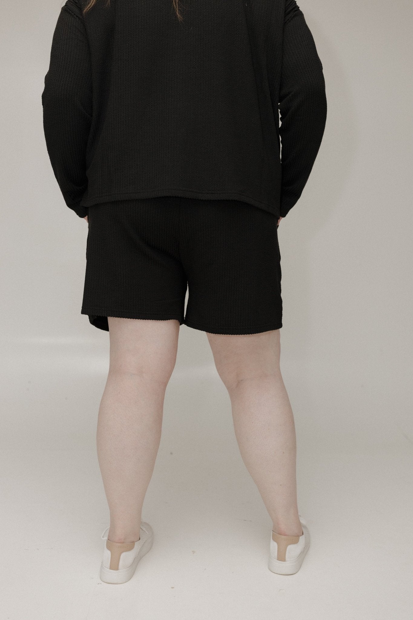 Experience effortless comfort and modern style with the Luxe Ribbed Tie Front Elastic Waist Shorts in Black — your go-to piece for elevated everyday wear. Designed in a lightweight, breathable ribbed knit, these shorts move with you, offering the perfect balance of comfort, stretch, and polish.