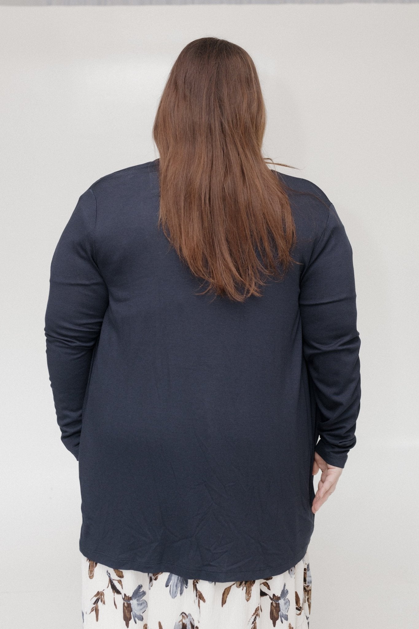 ESSENTIAL LIGHTWEIGHT LONG-SLEEVED CARDIGAN IN DEEP NAVY
