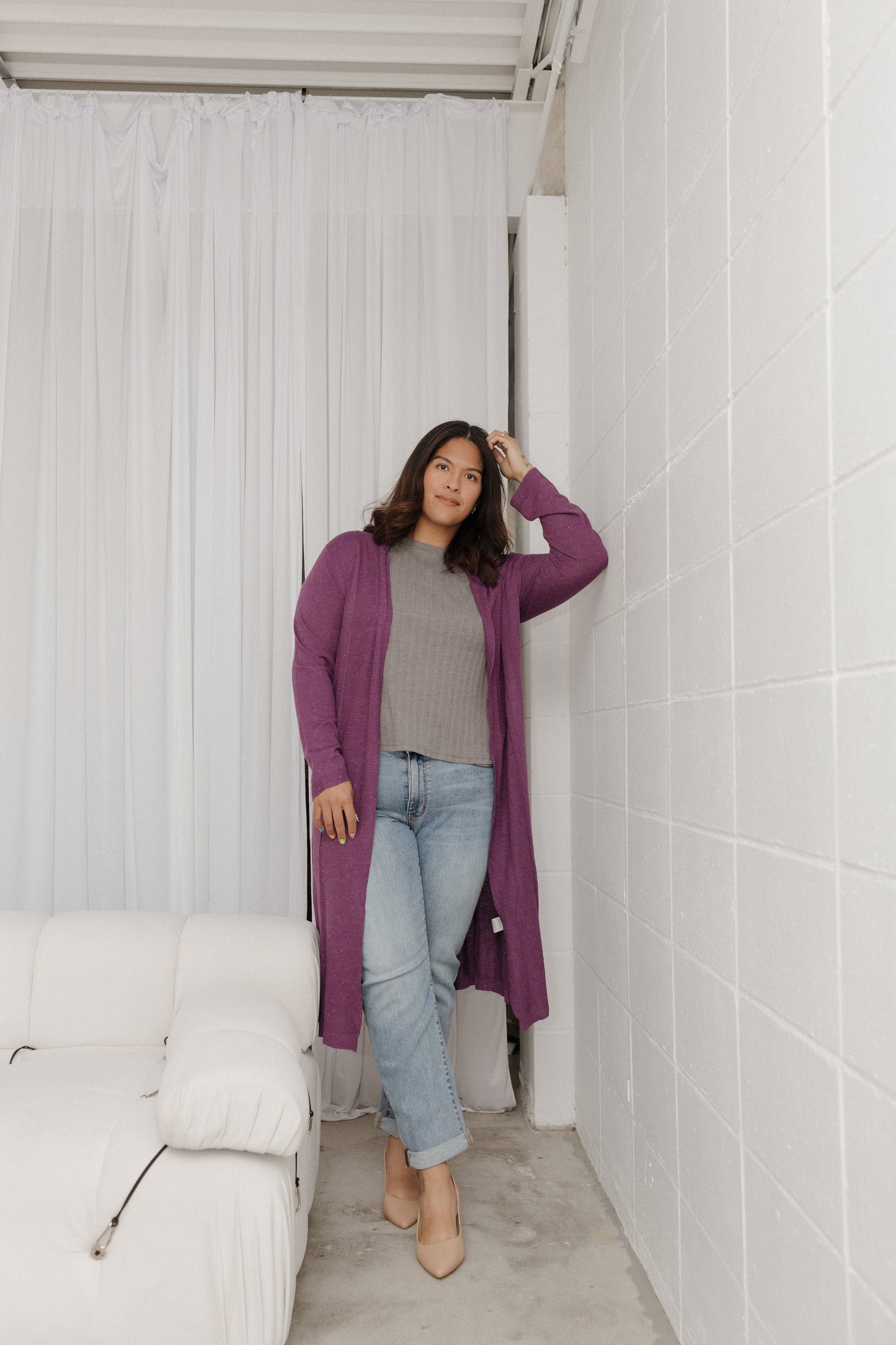 Step into your queen era with our Shimmery Lightweight Belted Duster Cardigan in Royalty, designed to make every woman feel elevated, confident, and effortlessly chic. This shimmering longline duster blends comfort with glam thanks to its lightweight drape, soft viscose blend, and subtle metallic sheen that catches the light beautifully.