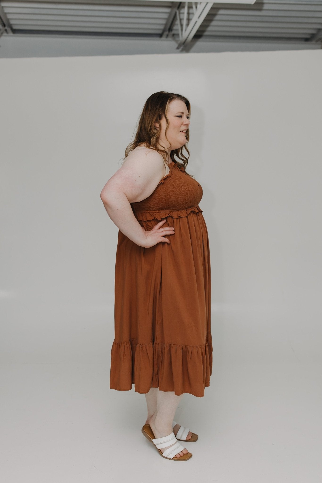 Crafted in a rich bronze hue, this flowy fit-and-flare silhouette is equal parts boho and elevated, perfect for vacations, brunch dates, or festival season.