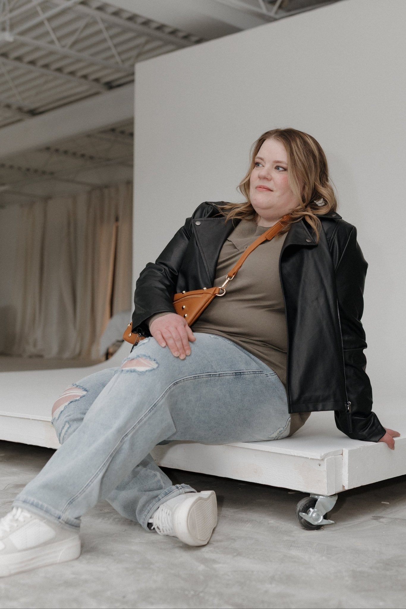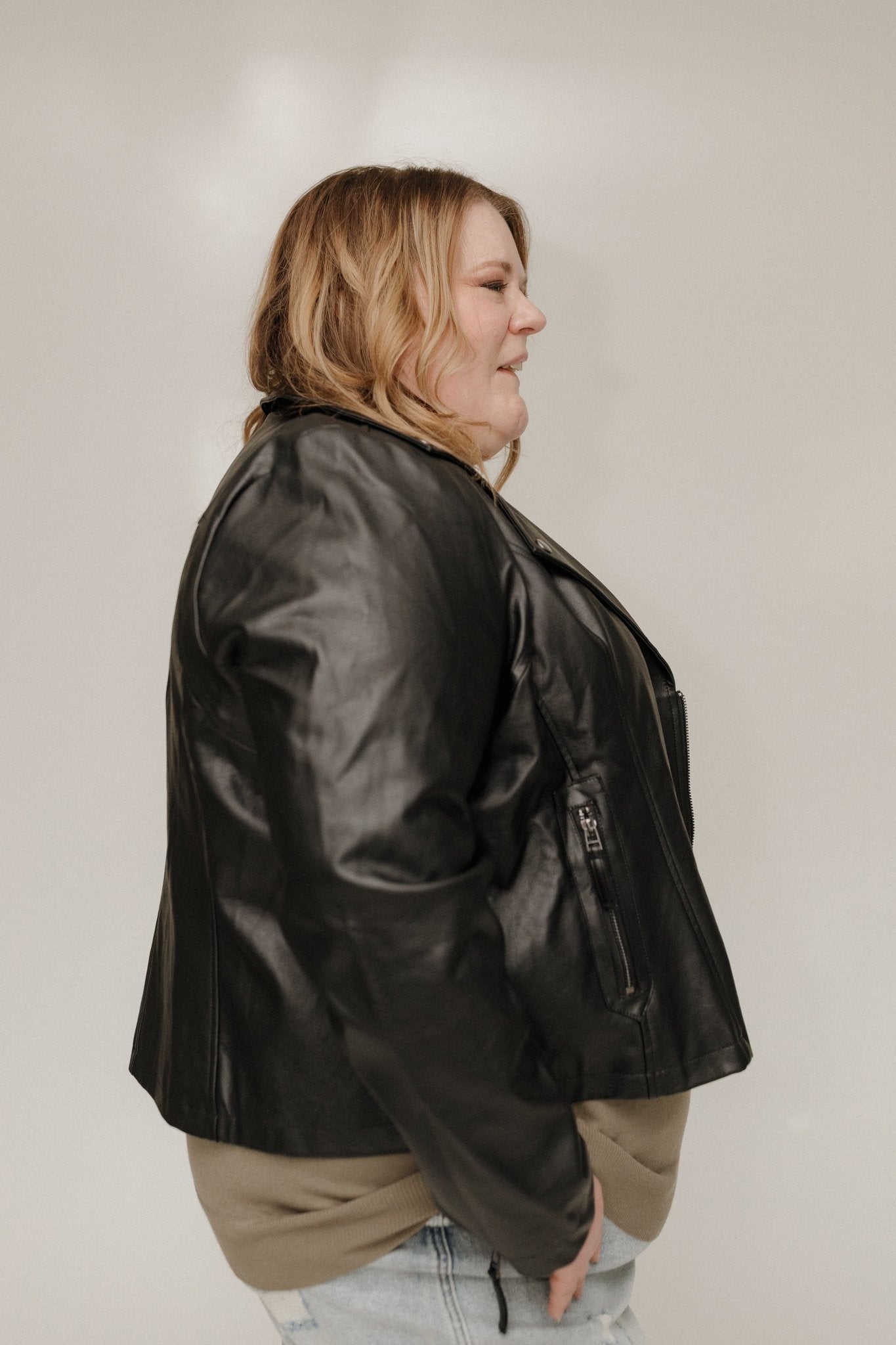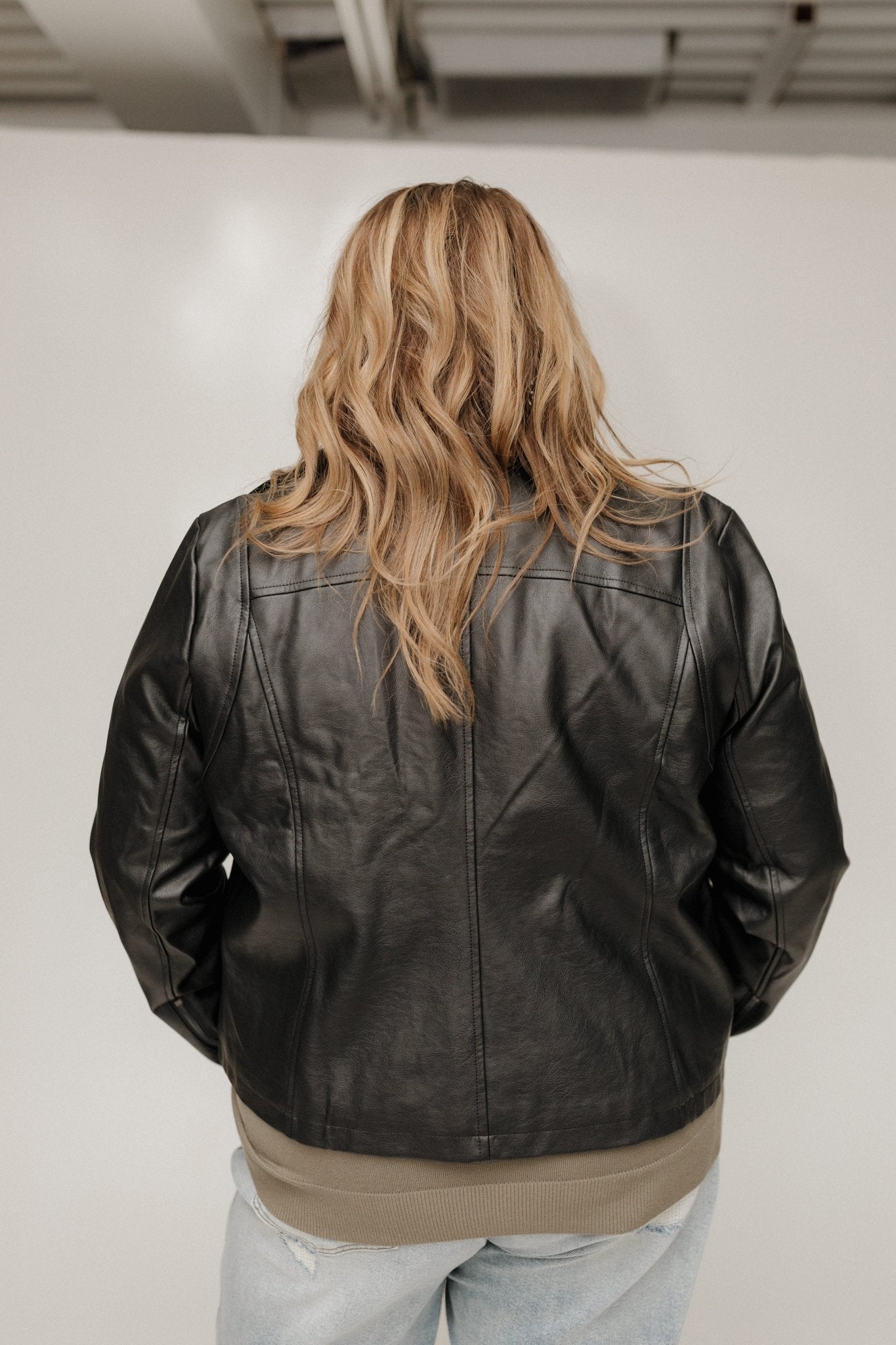 Meet the layer that instantly upgrades everything. The Faux Leather Moto Jacket in Black is a timeless closet essential with elevated detailing that sets it apart. Designed with sleek darting on the front and back, this jacket creates a flattering, structured silhouette while still feeling wearable and comfortable.