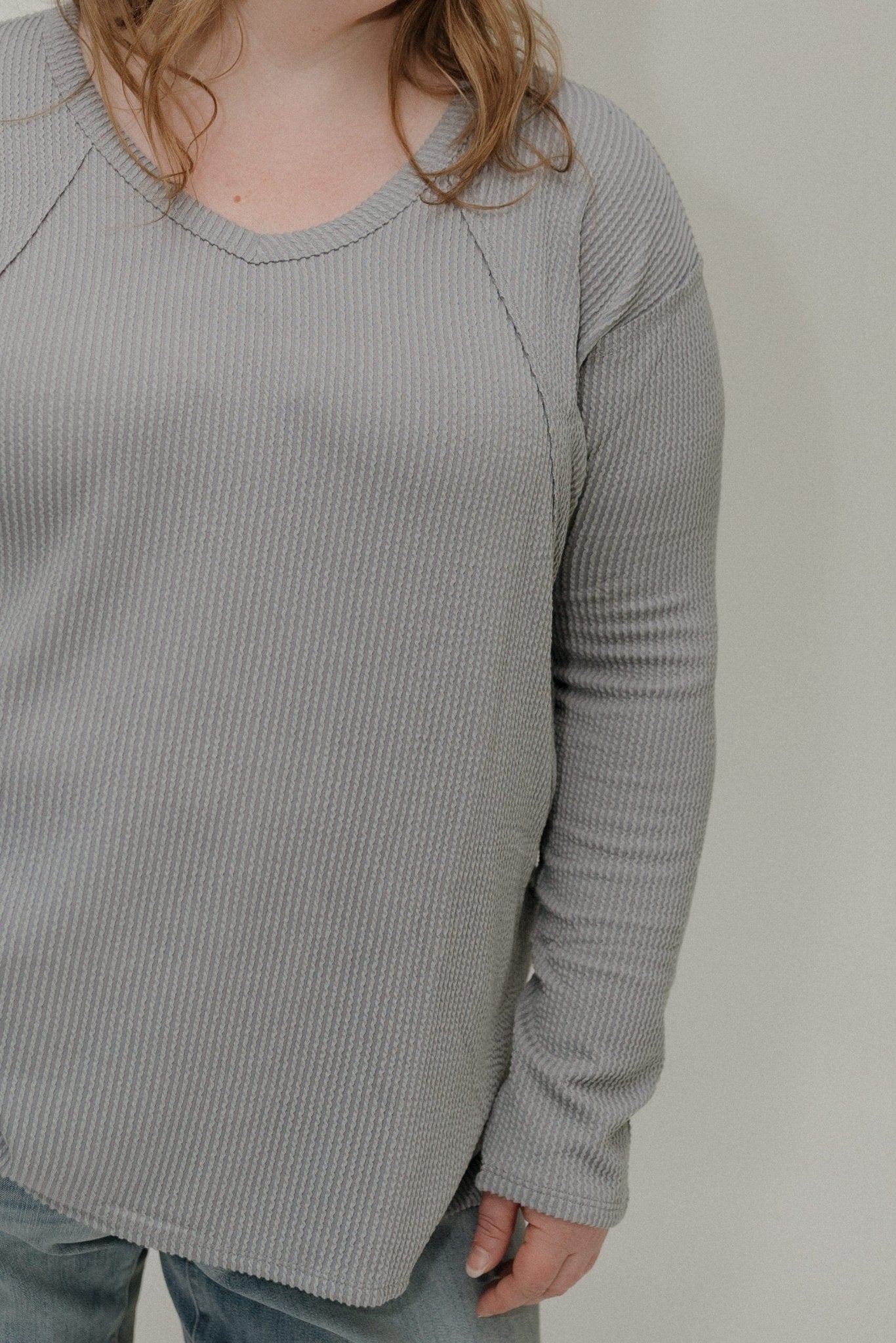 Meet your new favorite essential: the Grey Ribbed Raglan Sleeve V-Neck Long Sleeve Tee, designed for effortless comfort and everyday style. Crafted from a soft, stretchy ribbed knit, this long sleeve top drapes beautifully with a relaxed silhouette that flatters every figure.