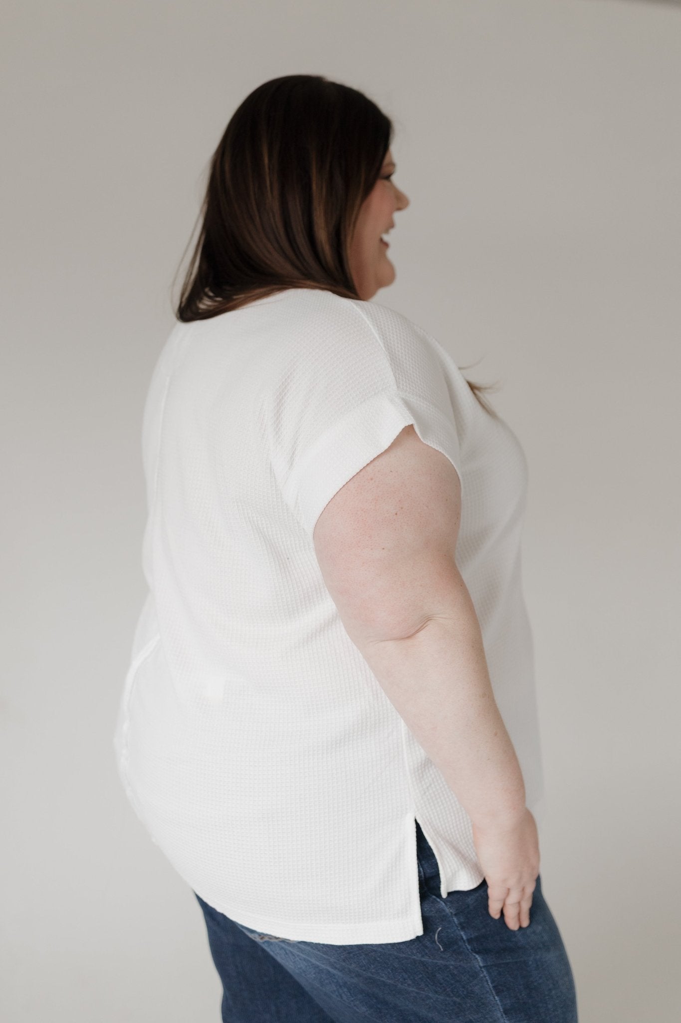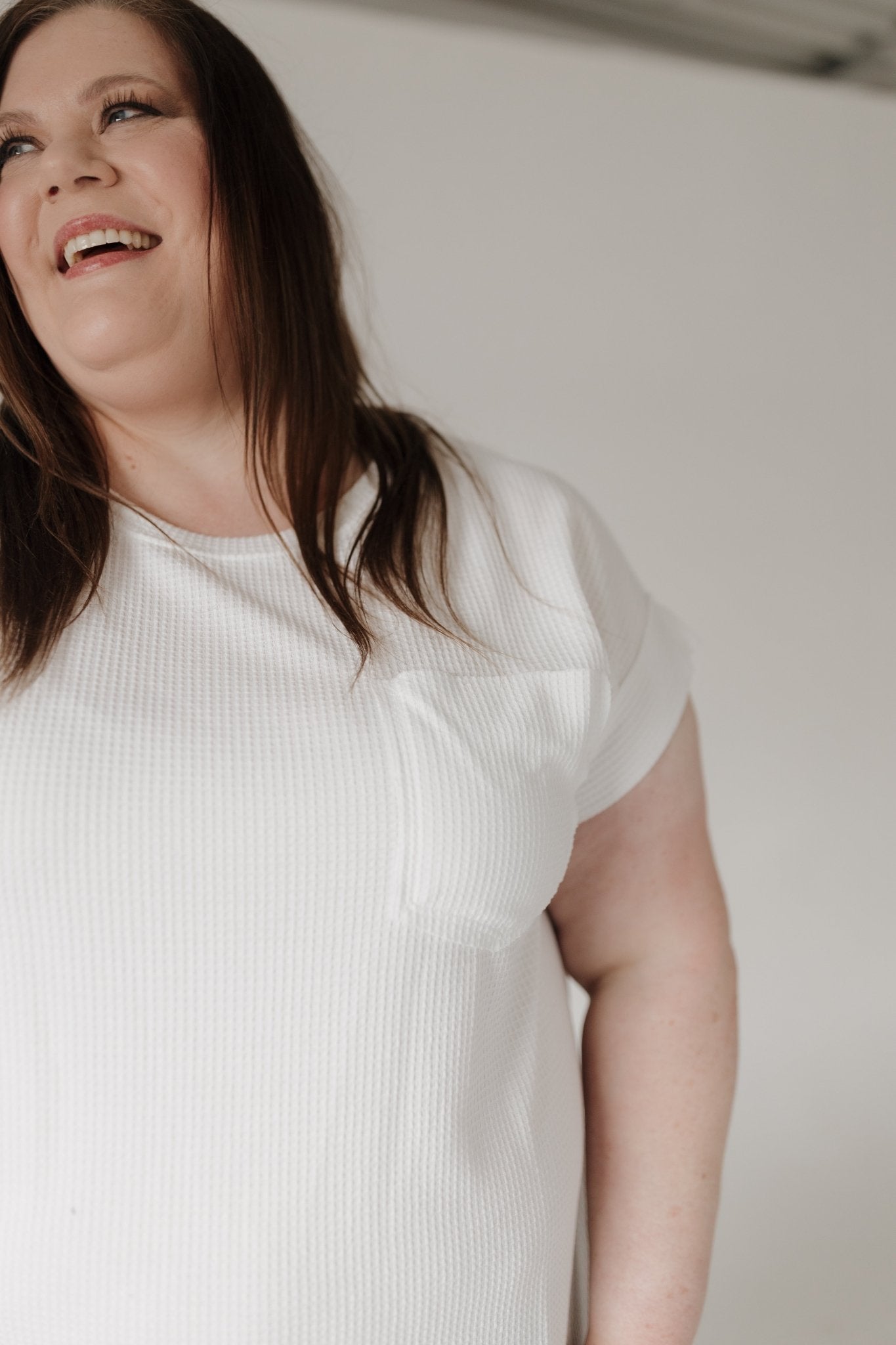 Meet your new go-to everyday essential. The Crew Neck Thermal Dolman Tee with Front Pocket is designed for mid-size and plus-size women who want cozy comfort without giving up style.