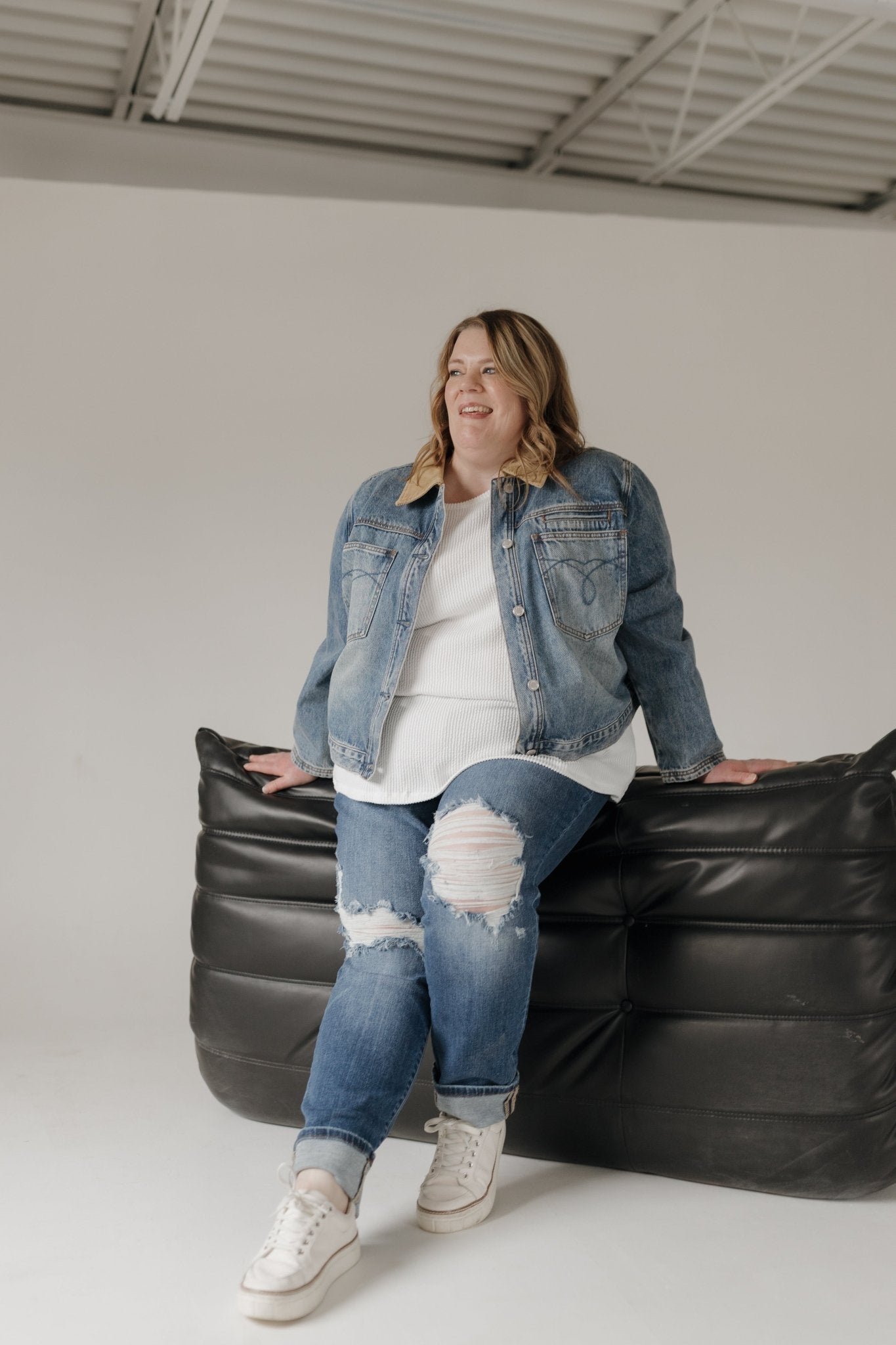- Layer under a vest, denim jacket, or blazer