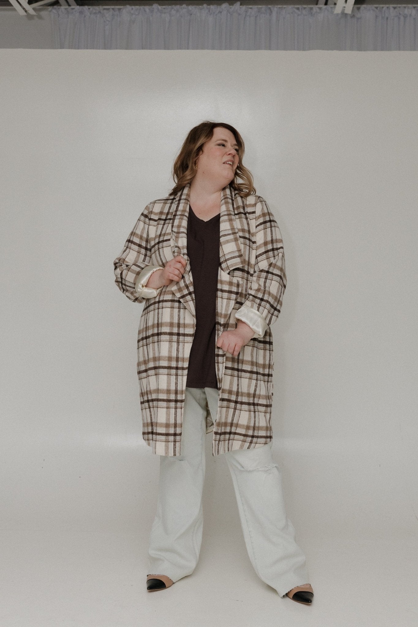 Step into effortless elegance with our Lightweight Plaid Midi Blazer, a timeless piece perfect for year-round styling. This versatile blazer features a classic plaid pattern in light mocha, brown, and sky blue, offering a sophisticated pop of color for any outfit. The open-front bodice and long sleeves create a flattering silhouette that pairs seamlessly with skirts, trousers, or jeans.