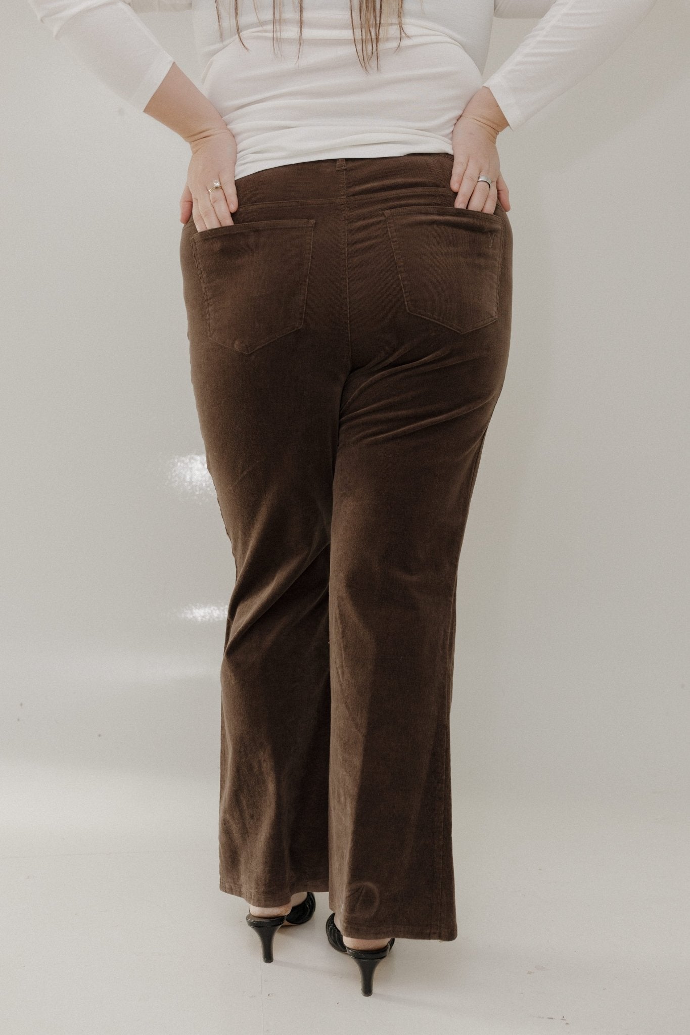 STRETCHY CORDUROY FLARE PANTS – WALNUT