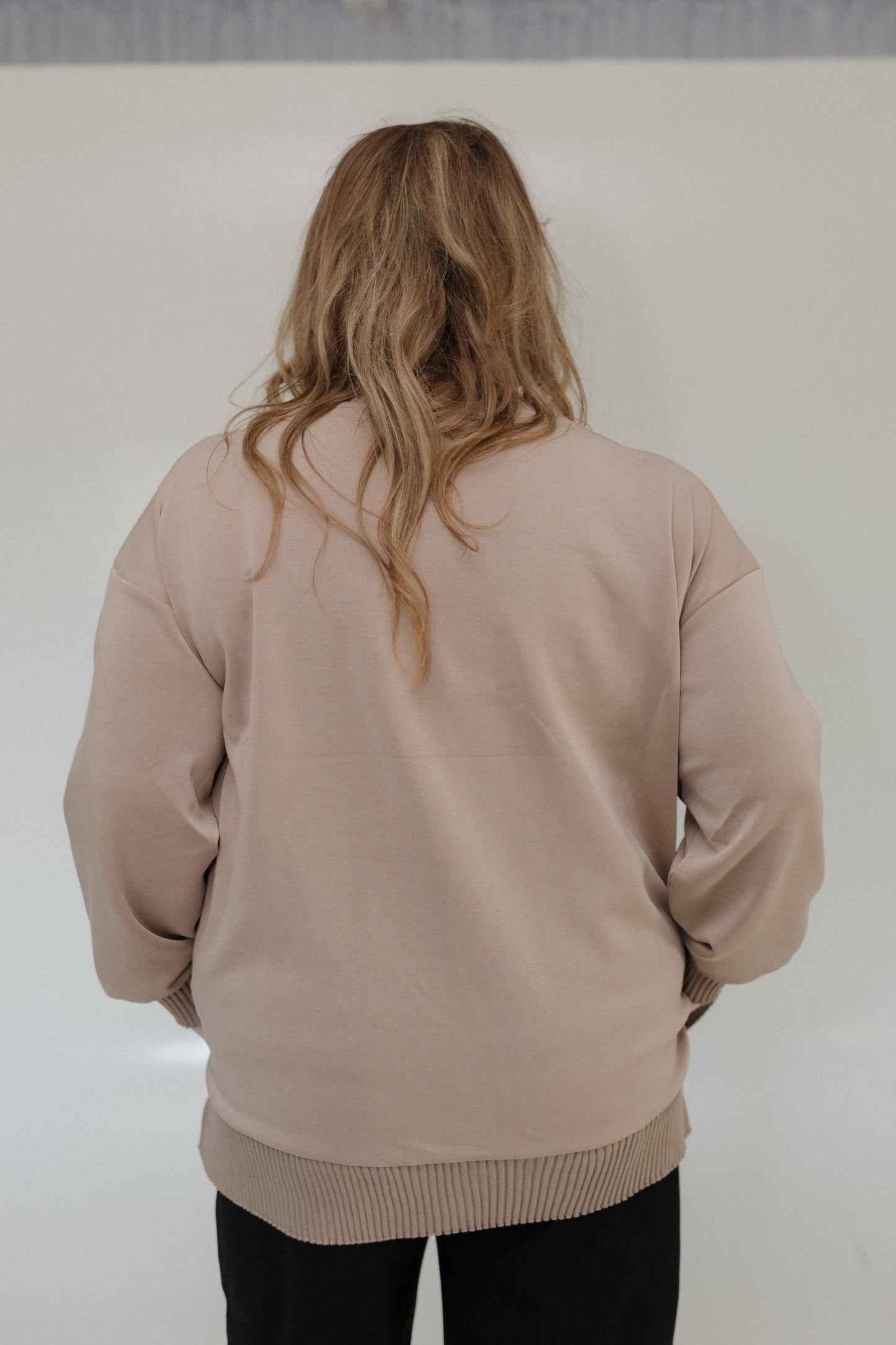 The loose ribbed design, refined ribbed cuffs, and split hem add both polish and ease, making it a timeless piece you’ll wear from desk to dinner. The mocha brown hue brings warm, neutral sophistication—an essential shade for building endless outfit combinations.