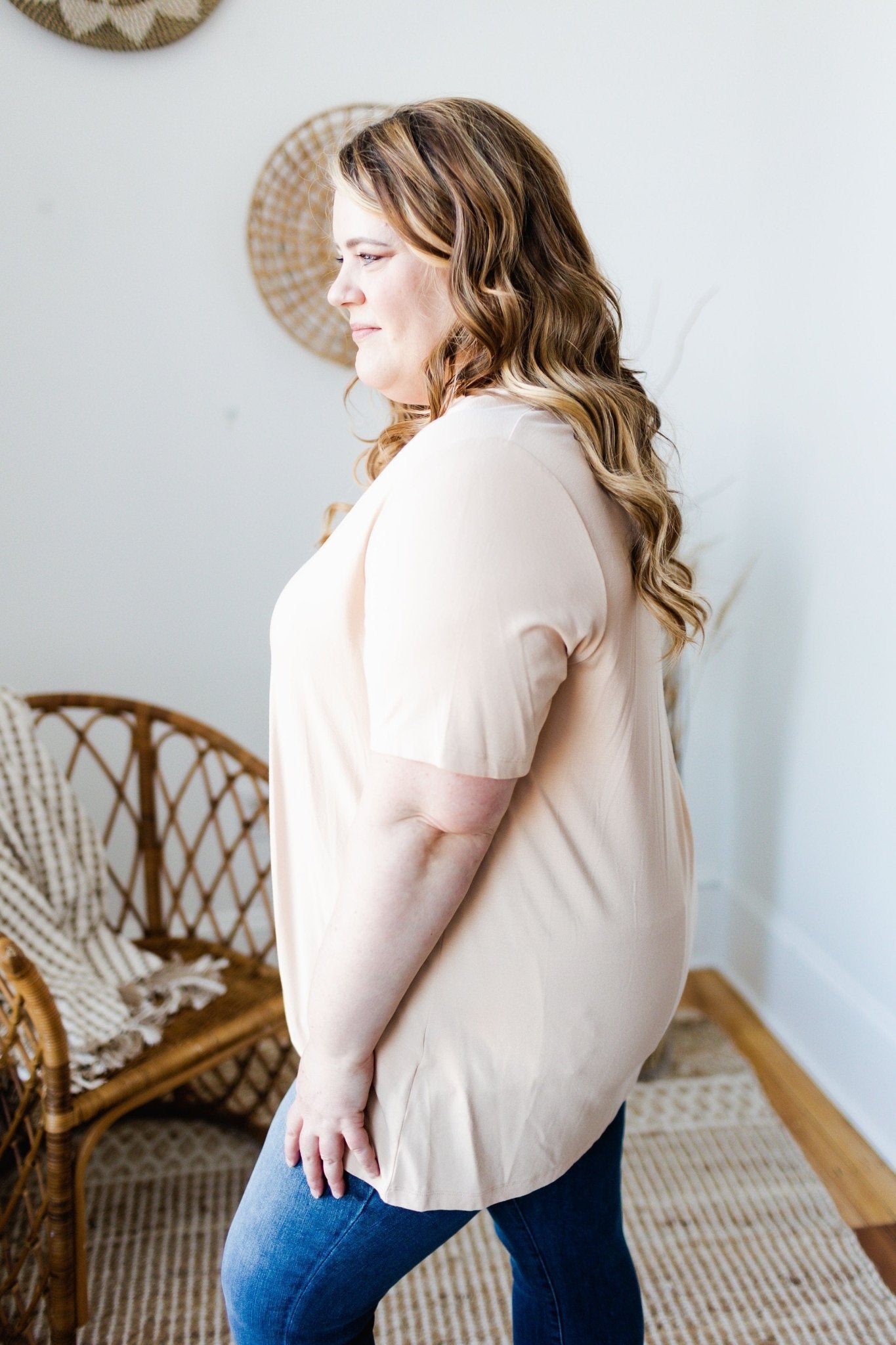 Yes, you need this tee in every color! This dark taupe is such a beautiful year-round color, but gives off the perfect fall vibes we are looking for right now! The luxurious fabric will have you in heaven all day long! The best part about the material is it skims your body but doesn't cling to your curves! It has a v-neckline, perfect-length short sleeves, and tunic length. Fits true to size.