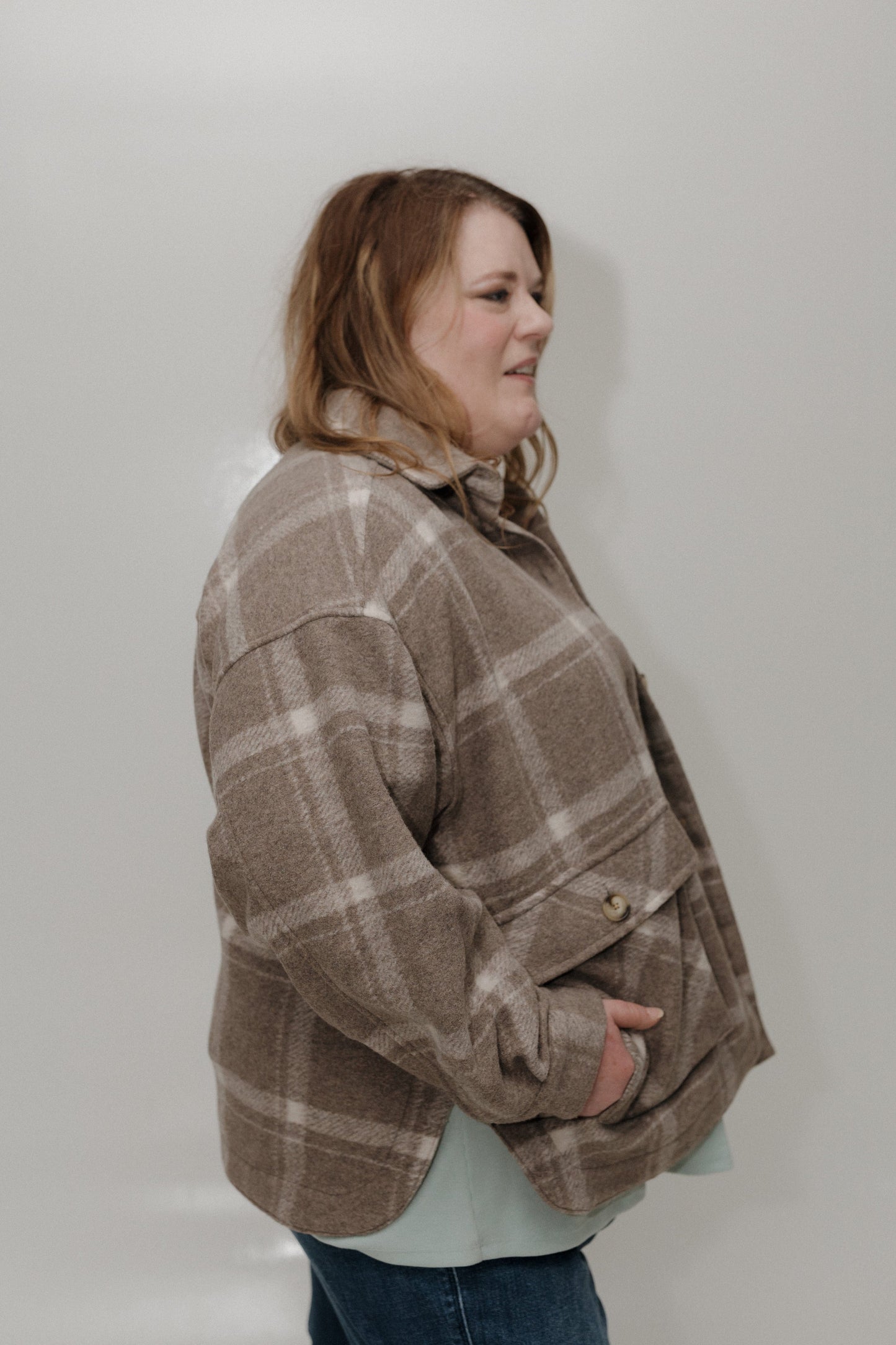 Elevate your outerwear game with our Classic Shacket in Earth Tones, a versatile mid and plus-size layering piece perfect for any occasion. Crafted from 100% polyester, this checked shirt jacket combines style, comfort, and structure for a polished, effortless look.