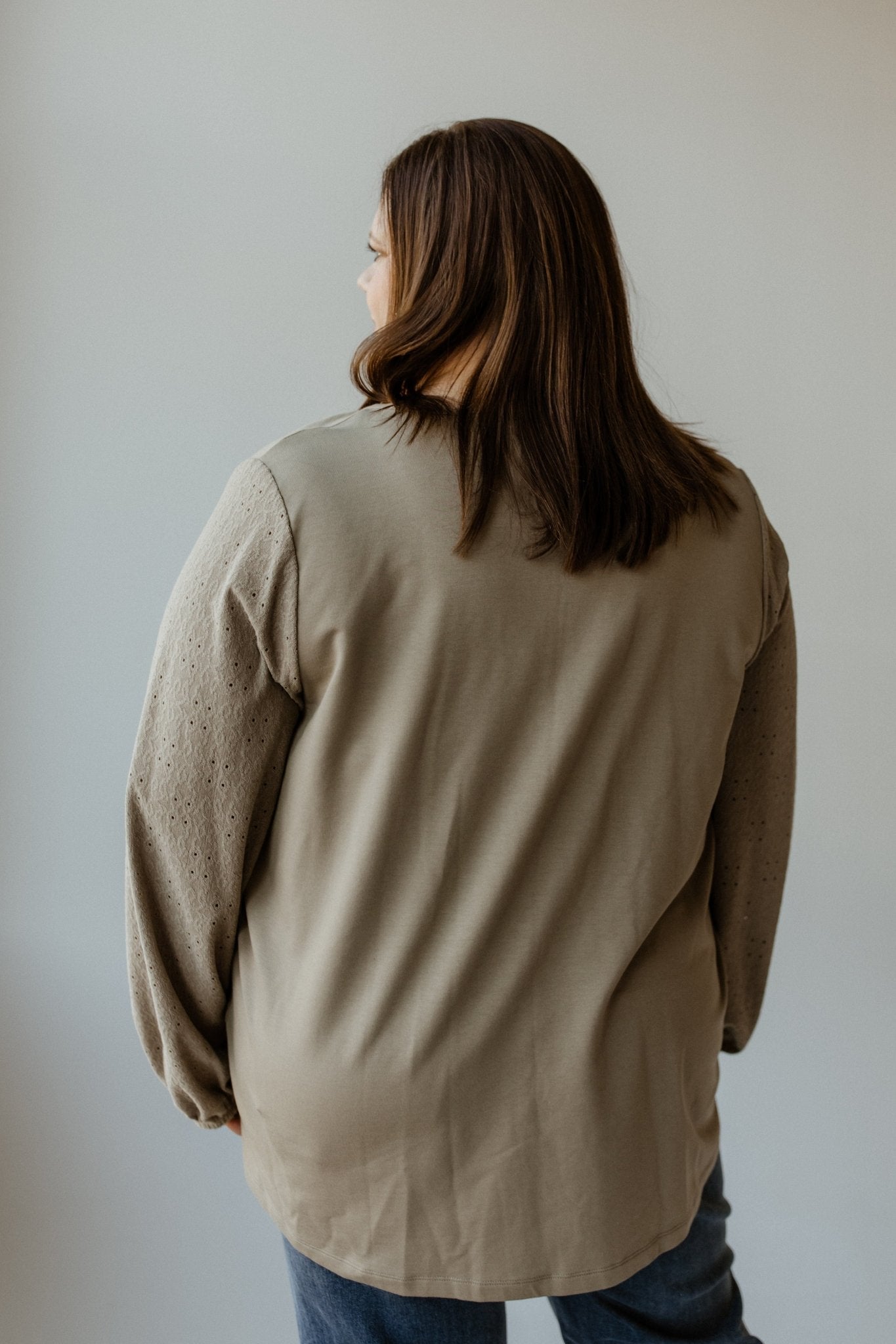 LACE SLEEVE BOHO BLOUSE IN SOFT ARMY
