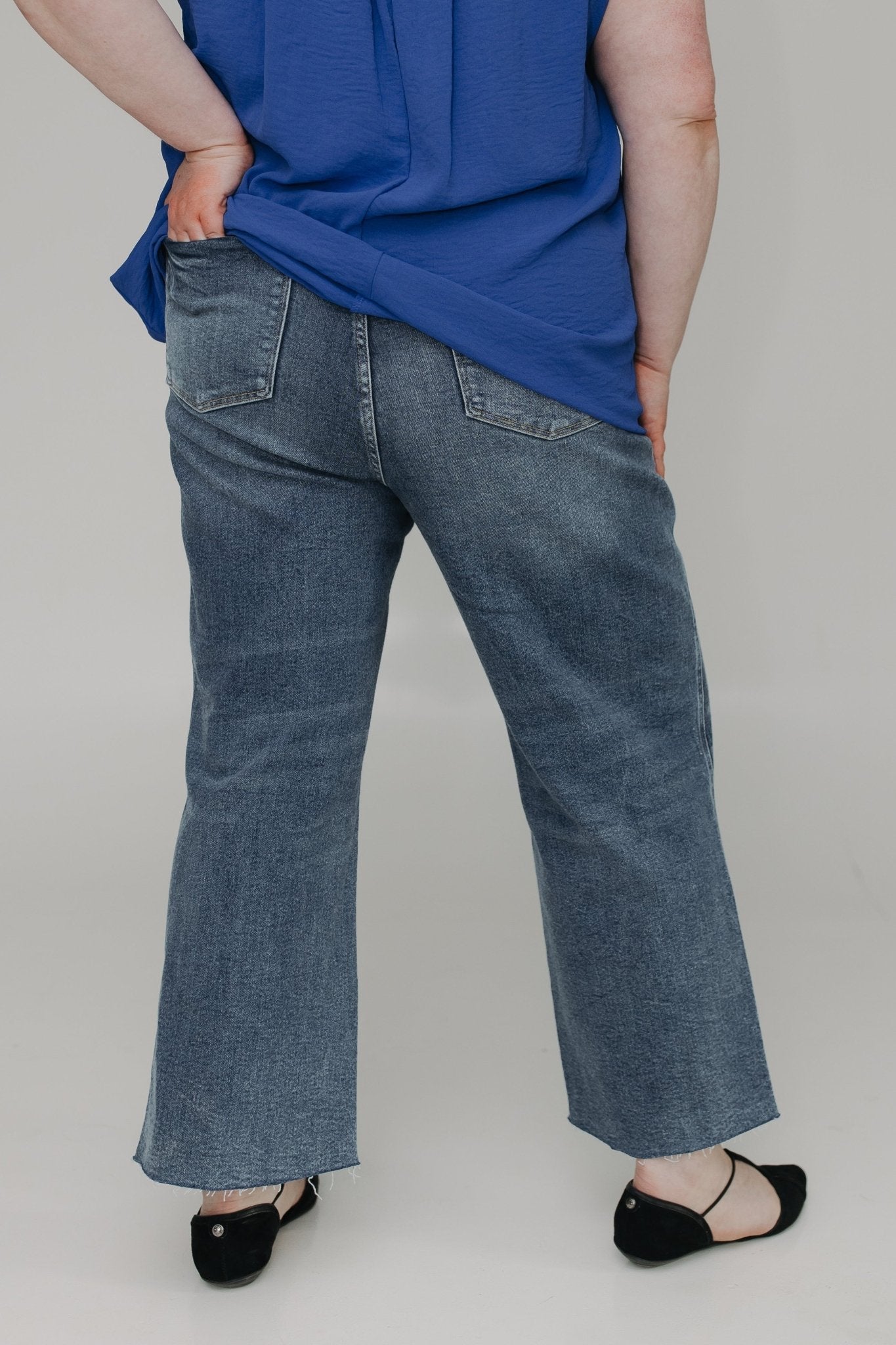 Meet your new favorite statement denim—the High Waist Wide Leg Crop with Destroyed Hem! Designed with Judy Blue’s Rigid Magic fabric, these jeans offer the best of both worlds: a structured, smooth front with no stretch and a super-stretchy back that lifts and flatters. The 11 1/4" high rise and 26" cropped inseam create a trendy, leg-lengthening silhouette, while the destroyed hem adds the perfect touch of edge.