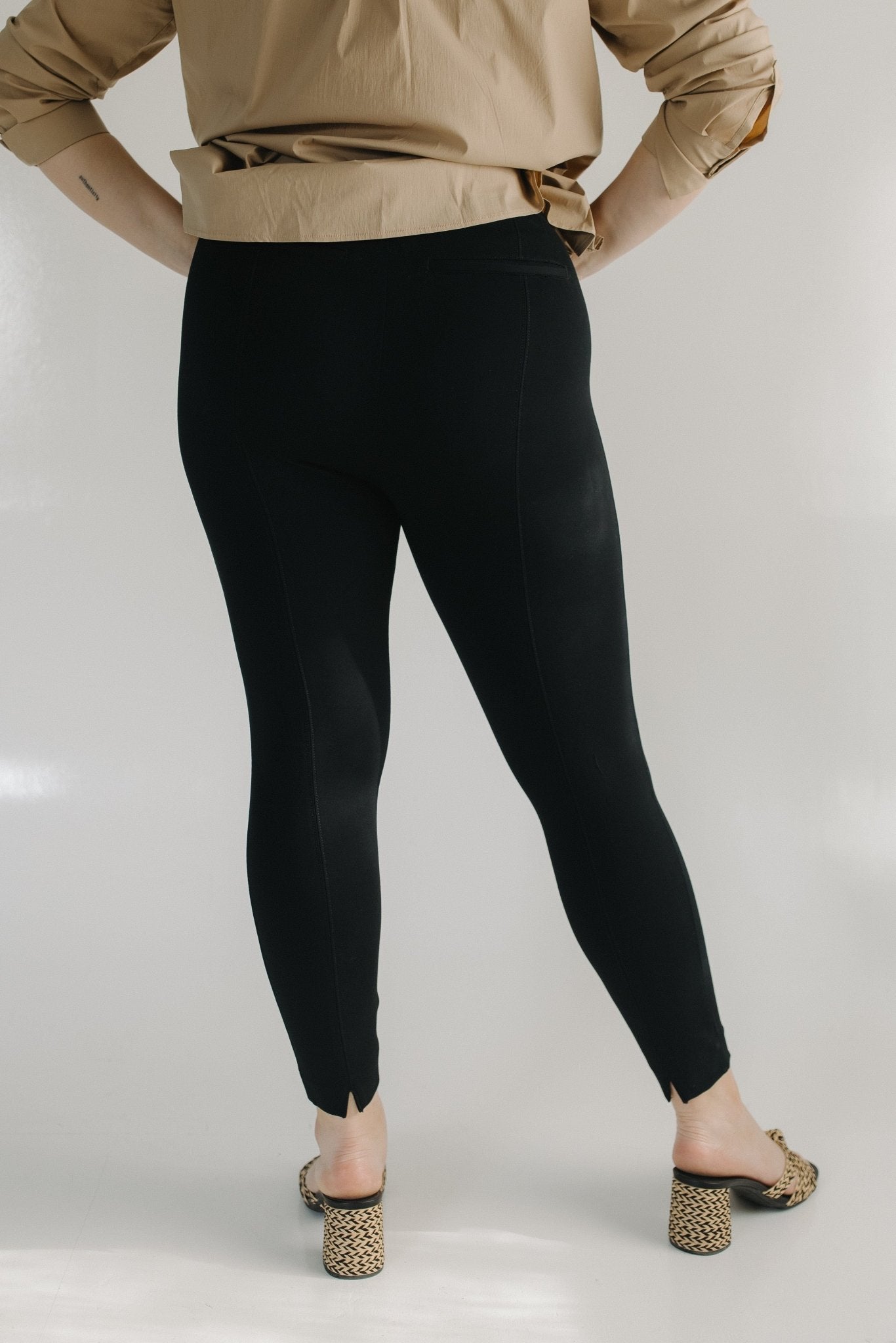 The pull-on design gives you a smooth, flat front (no bulk, no buttons!) while hidden Gut Check™ shaping targets your tummy for a confident, comfortable fit. A tailored back seam elongates your legs, and the premium 4-way stretch ponte fabric flatters every curve — perfect for mid and plus-size women.