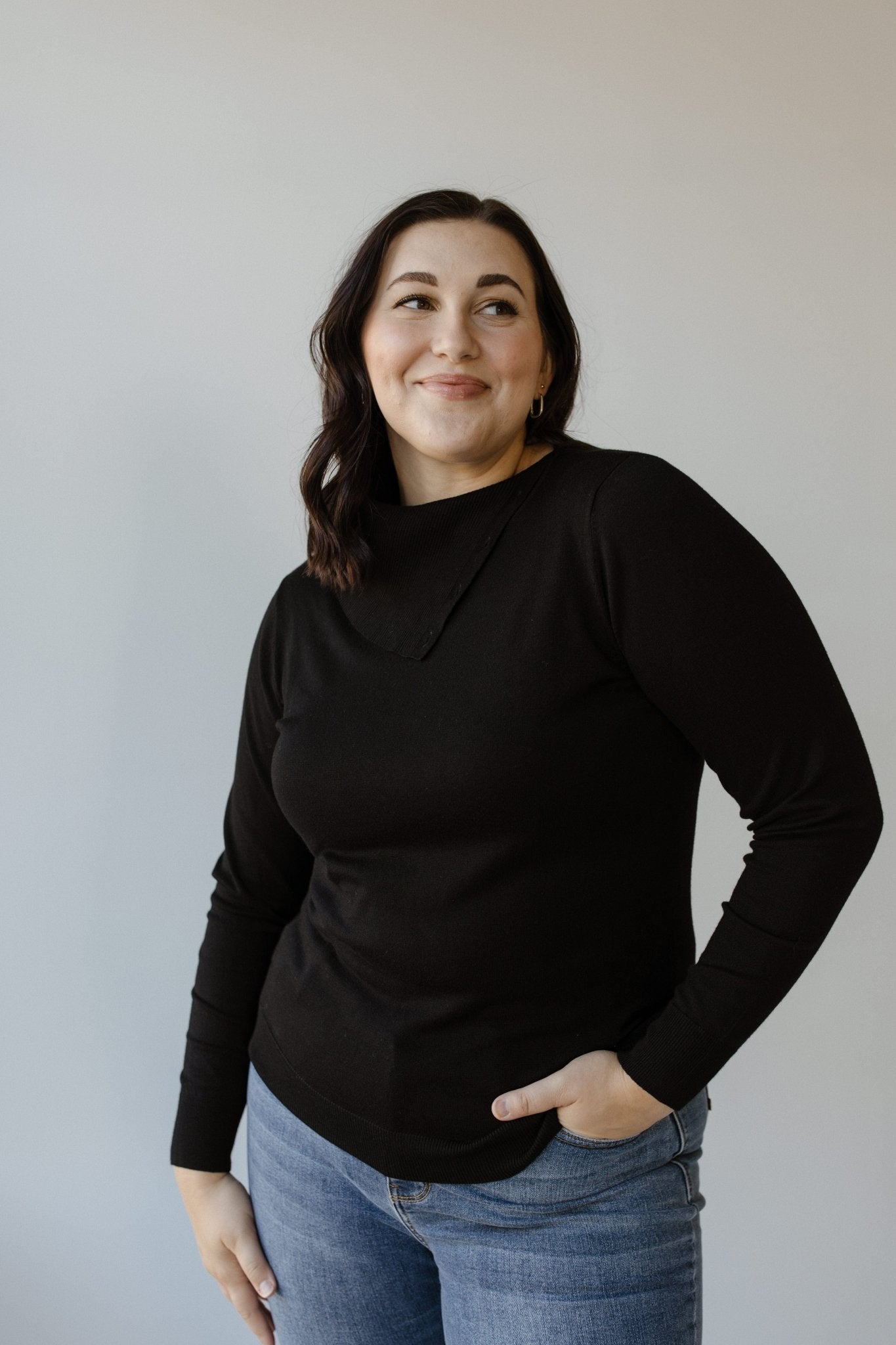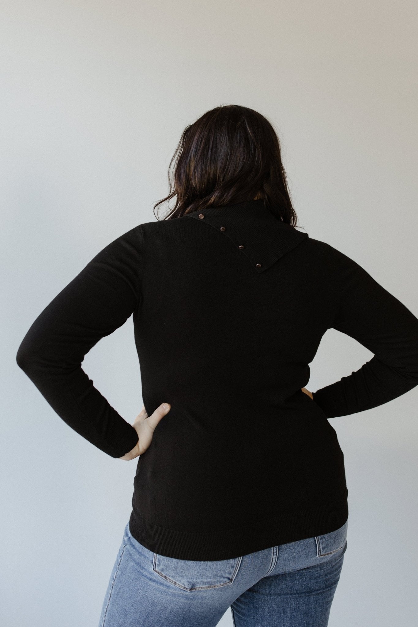 Luxury meets elevated fun. This turtleneck sweater is perfect for work events and cozy date nights. The classic black color is sophisticated and fun simultaneously, with classic copper buttons on the neck. You’ll love the coziness of the luxe fabric that is stretchy and not too overbearing. The tightly woven knit brings a luxurious and elegant feel. The fabric is very lightweight and will keep you nice and warm, but not hot! Pair with jeans, or dress pants, or even throw on some faux leather leggings to bring the heat with this look! Fits true to size.