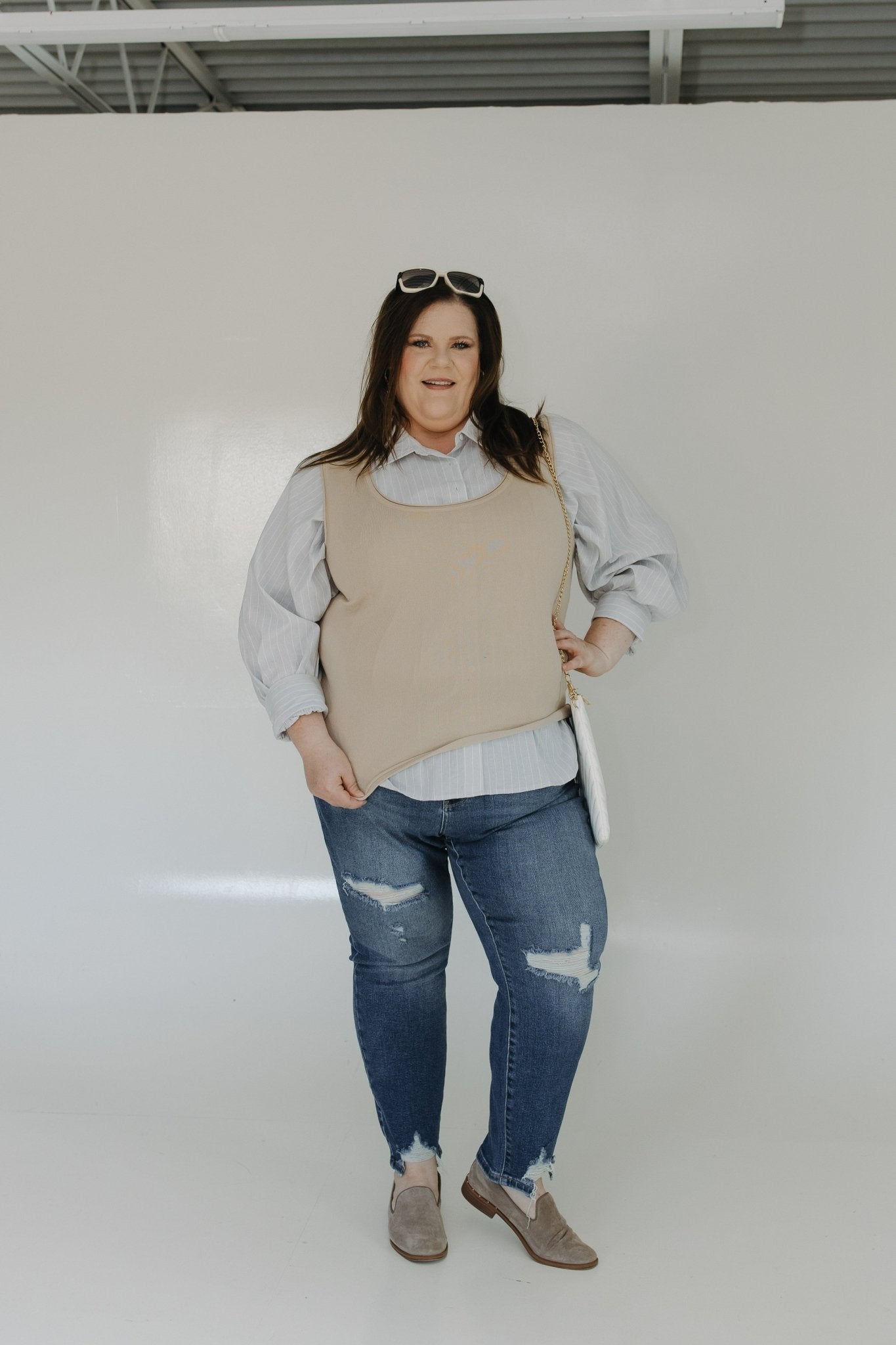 A tank top that’s anything but basic. Our Raw Edge Sweater Tank in Sand is made from an ultra-soft, lightweight sweater knit that feels like a dream on your skin. With wide tank straps, a scoop neckline, and raw edge detailing, this plus-size sweater tank gives laid-back vibes with just enough edge. Ideal for layering now and wearing solo later.