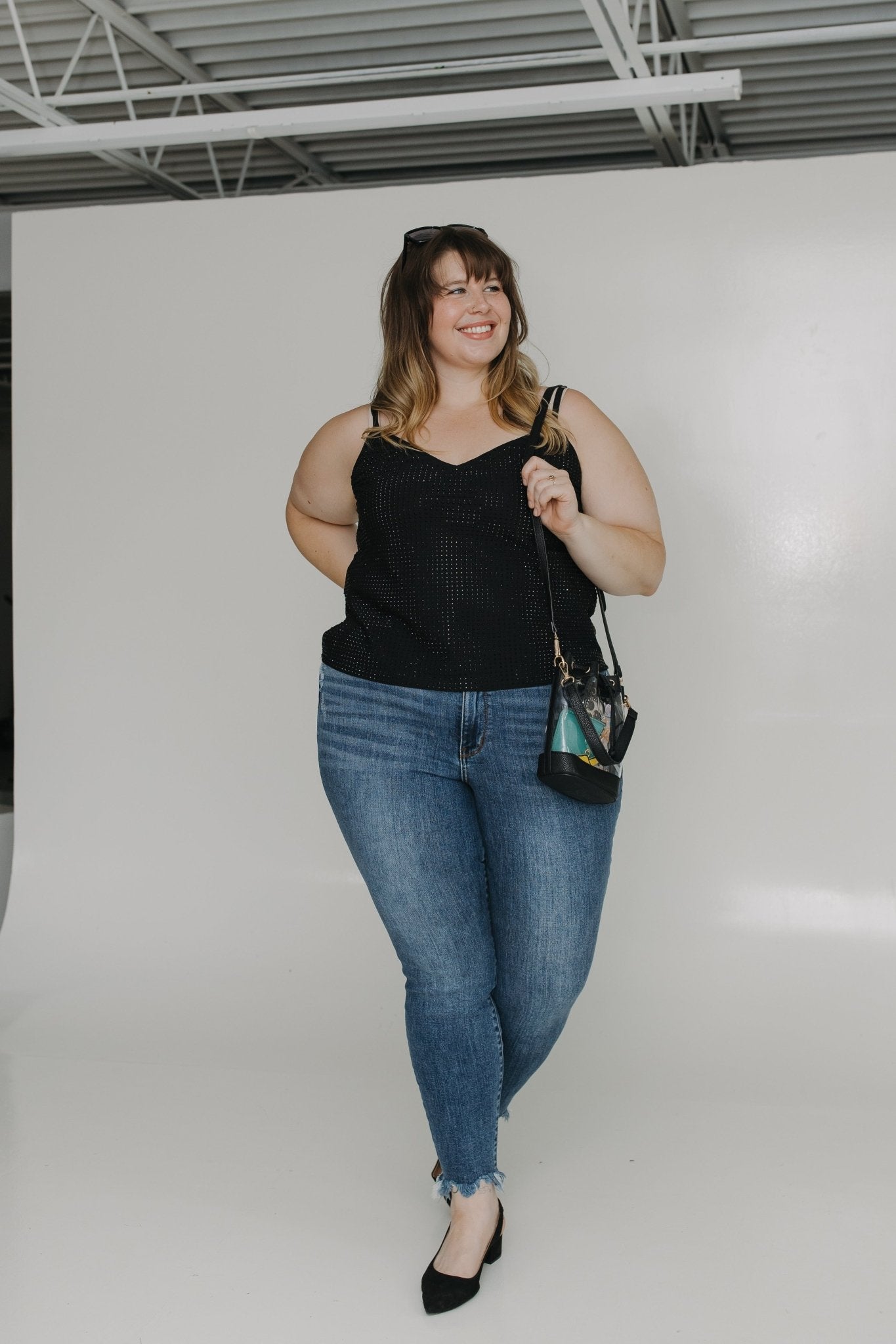 Say hello to your new night-out go-to. Our Shimmery Cami in Black brings the glam with a lightweight flowy fit, adjustable straps, and that head-turning shine. Whether you're layering it under a blazer for a polished look or pairing it with jeans for drinks with the girls, this top does it all. The subtle shimmer adds just the right amount of drama without overdoing it—because you’re not trying, you’re thriving.