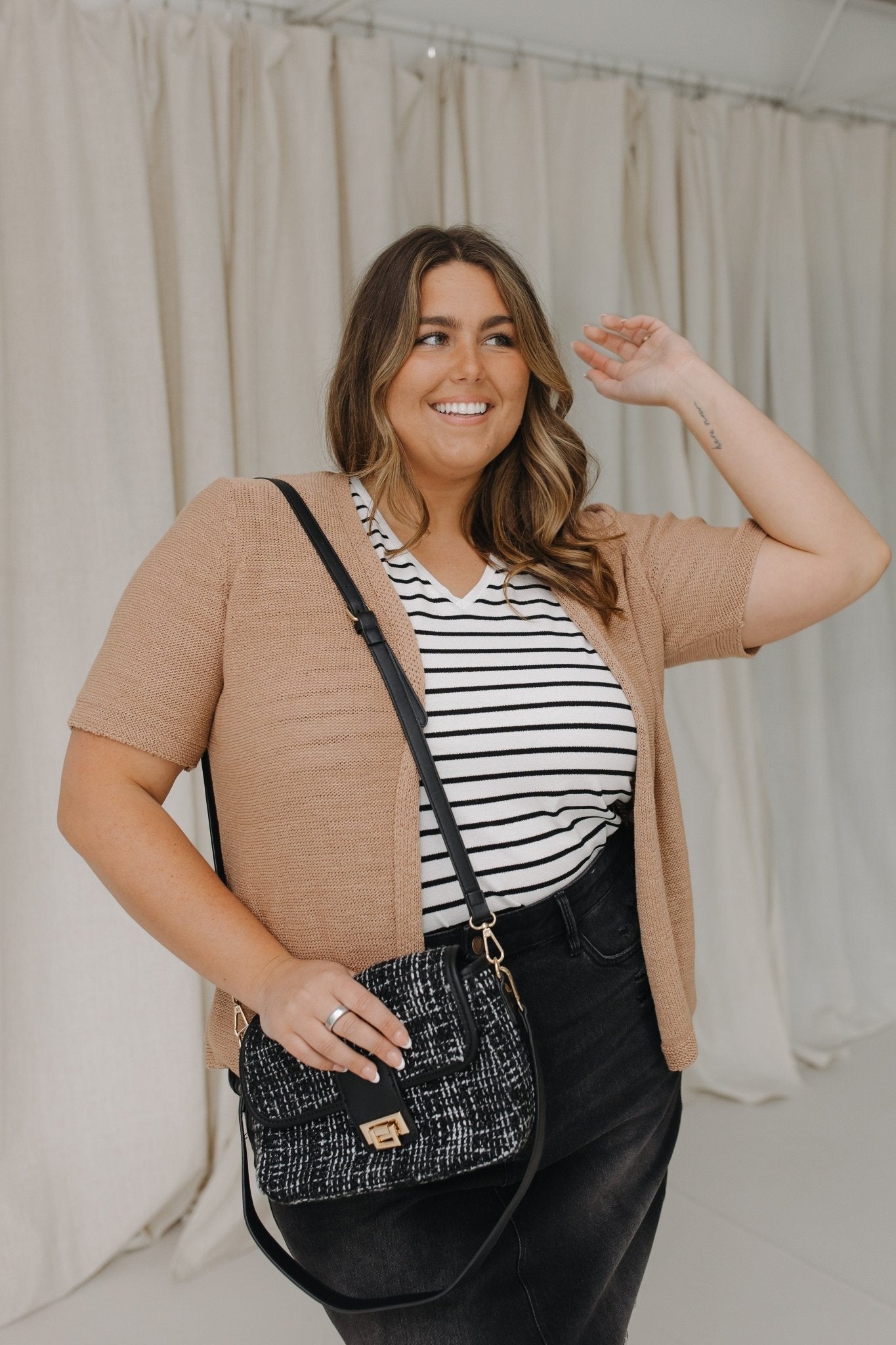 Polished layering, made easy. Our Lightweight Short Sleeve Cardigan in Light Camel is the versatile neutral your wardrobe needs. Crafted from a breathable, luxurious knit, this cardigan features short sleeves, an open front, and subtle stitched detailing for an elevated finish. The soft light camel shade brings effortless warmth to your look, pairing beautifully with denim, dresses, and tailored pieces alike. Whether you’re styling it for work, travel, or everyday ease, this cardigan delivers comfort and class in one lightweight layer.
