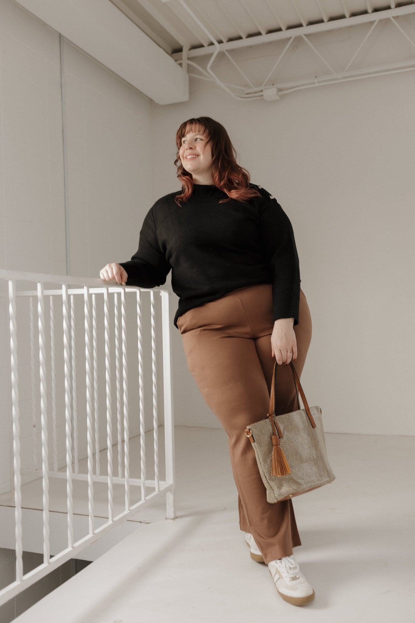 Stay warm, chic, and endlessly versatile in the Cozy Mock-Neck Button Shoulder Sweater in Black. Designed for mid-size and plus-size women, this elevated essential delivers cozy comfort with timeless style.
