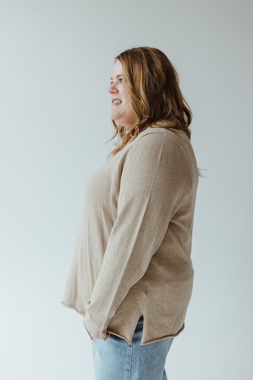 Luxury meets elevated fun! This classic sweater is perfect for work events and cozy date nights. The beautiful neutral tan color is sophisticated and fun at the same time with a fun raw edge on the cuff and hem. You’re going to love the coziness of the luxe fabric that is stretchy and not too overbearing. The tightly woven knit brings a luxurious and elegant feel. The fabric is very lightweight and will keep you nice and warm, but not hot! Pair with jeans, dress pants, or even throw on some faux leather leggings to bring the heat with this look! Fits true to size.