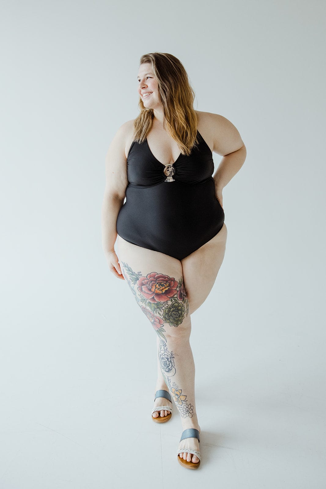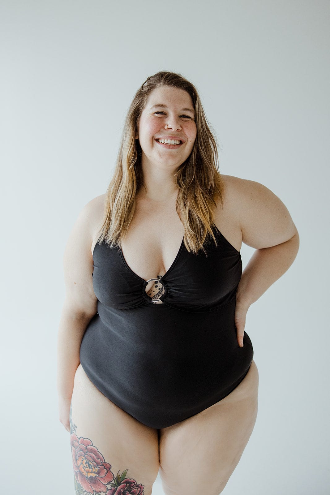 CRISSCROSS BACK SWIMSUIT WITH GOLD RING