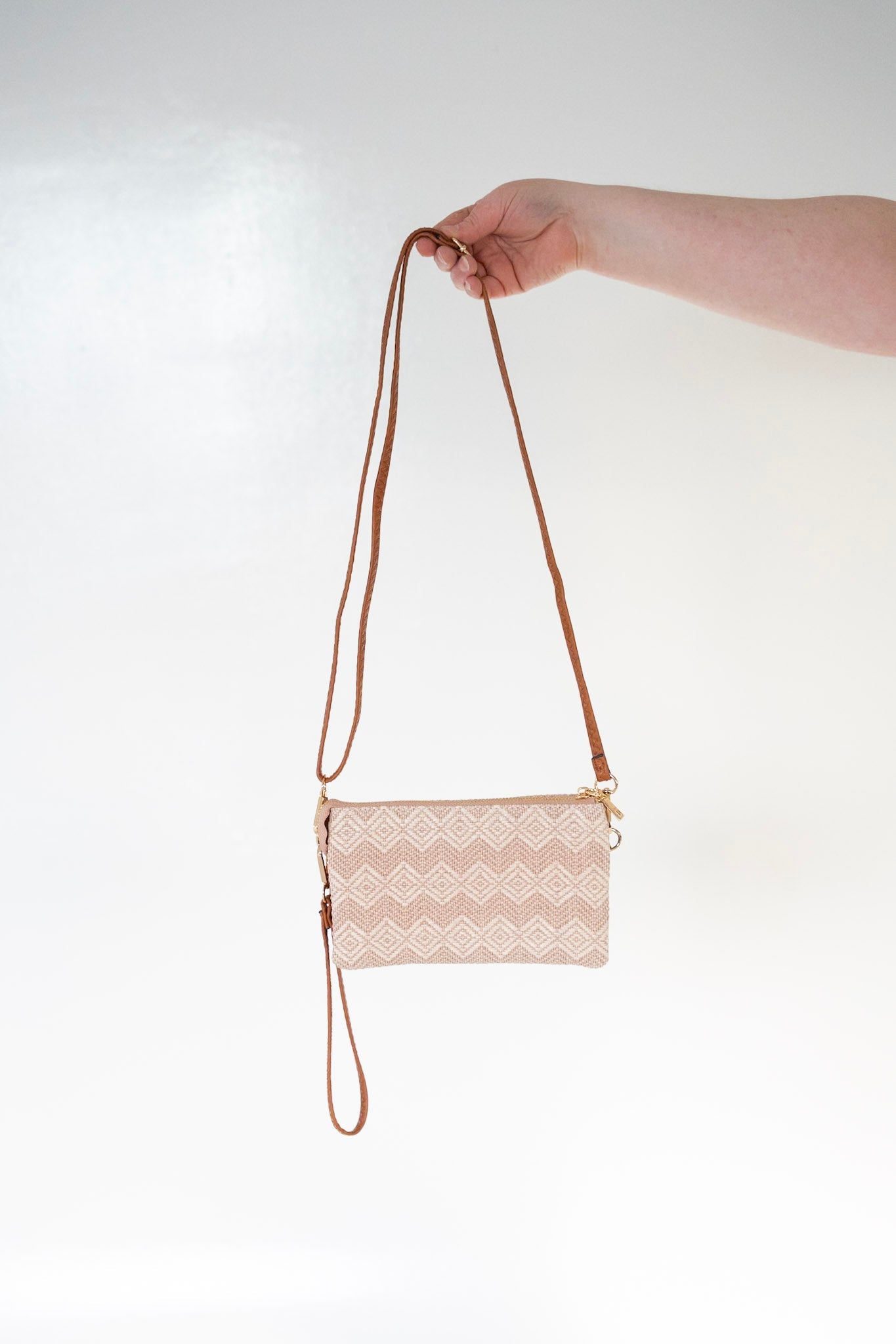 WOVEN DIAMOND PATTERN CLUTCH WITH FAUX LEATHER IN MAUVE