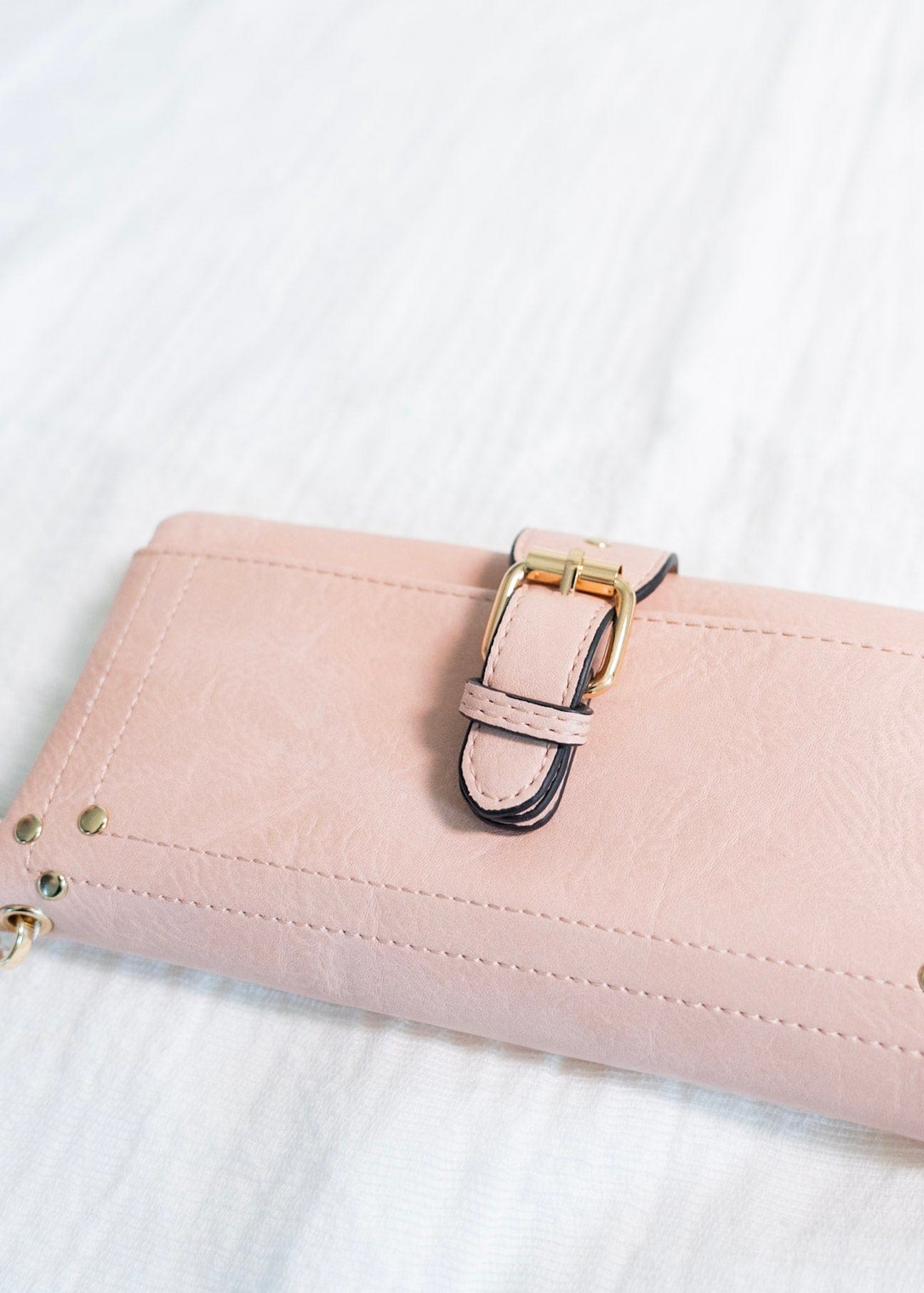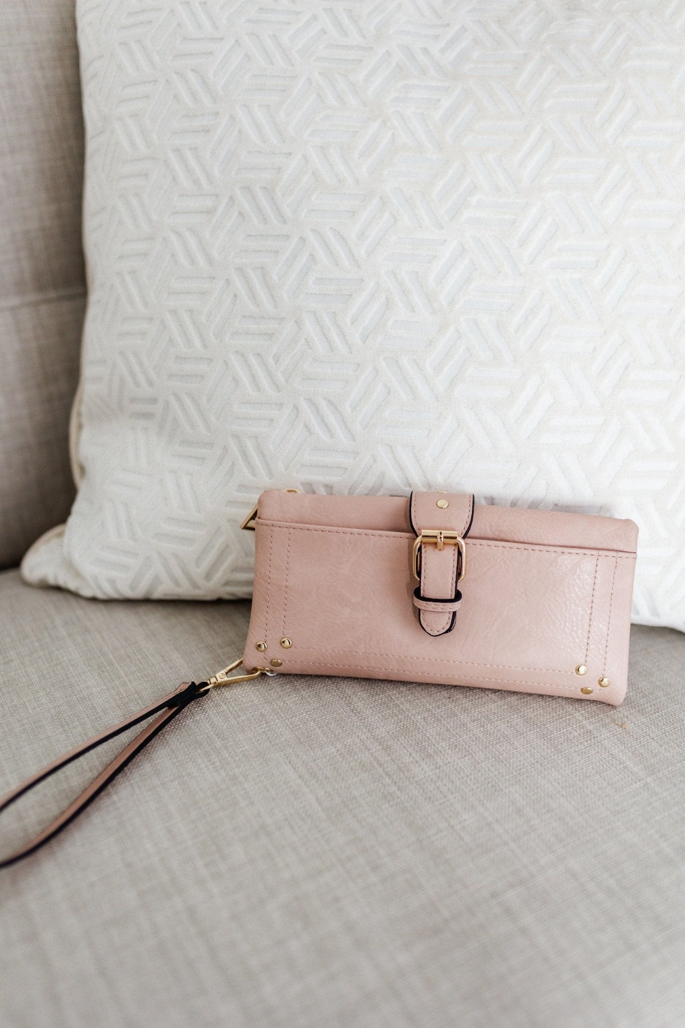This cute little wallet is perfect for on-the-go! Grab it and throw it into your bigger purse or use the wristlet strap to use it on its own. You'll love the magnetic snap closure, card holders, with see through ID slots, space for bills, coins, and is big enough to hold your phone! The sweet pink color will add the perfect little accent to your favorite 'fits!