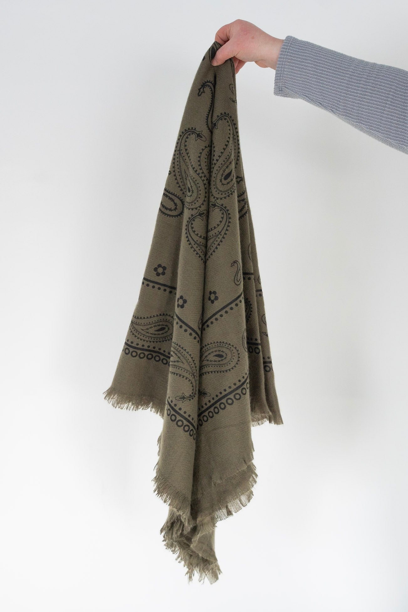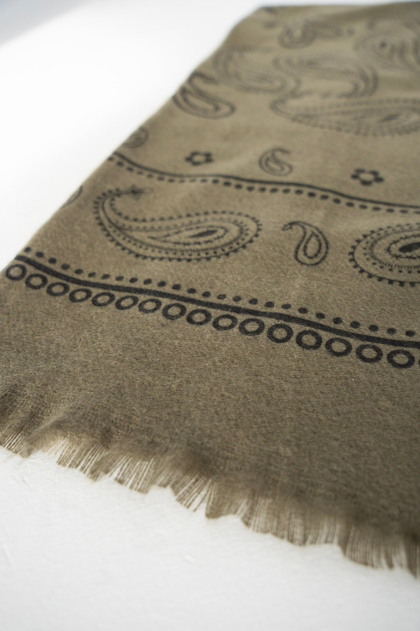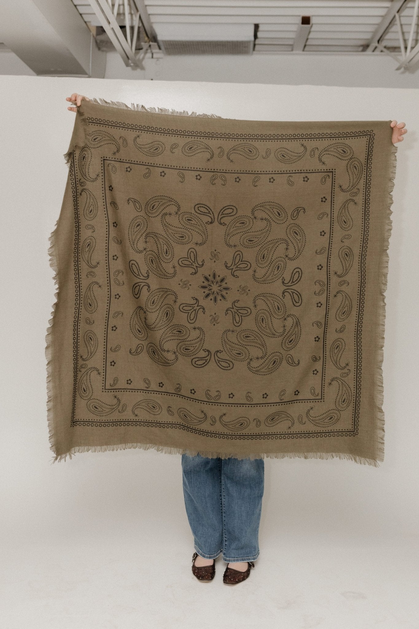 Meet the accessory your wardrobe didn’t know it was missing. The Bandana Scarf in Khaki is a large square scarf featuring a timeless bandana-inspired pattern with a modern, elevated feel. Designed in Paris and crafted from a luxe blend of viscose and wool, this scarf is lightweight yet cozy—perfect for layering year-round.