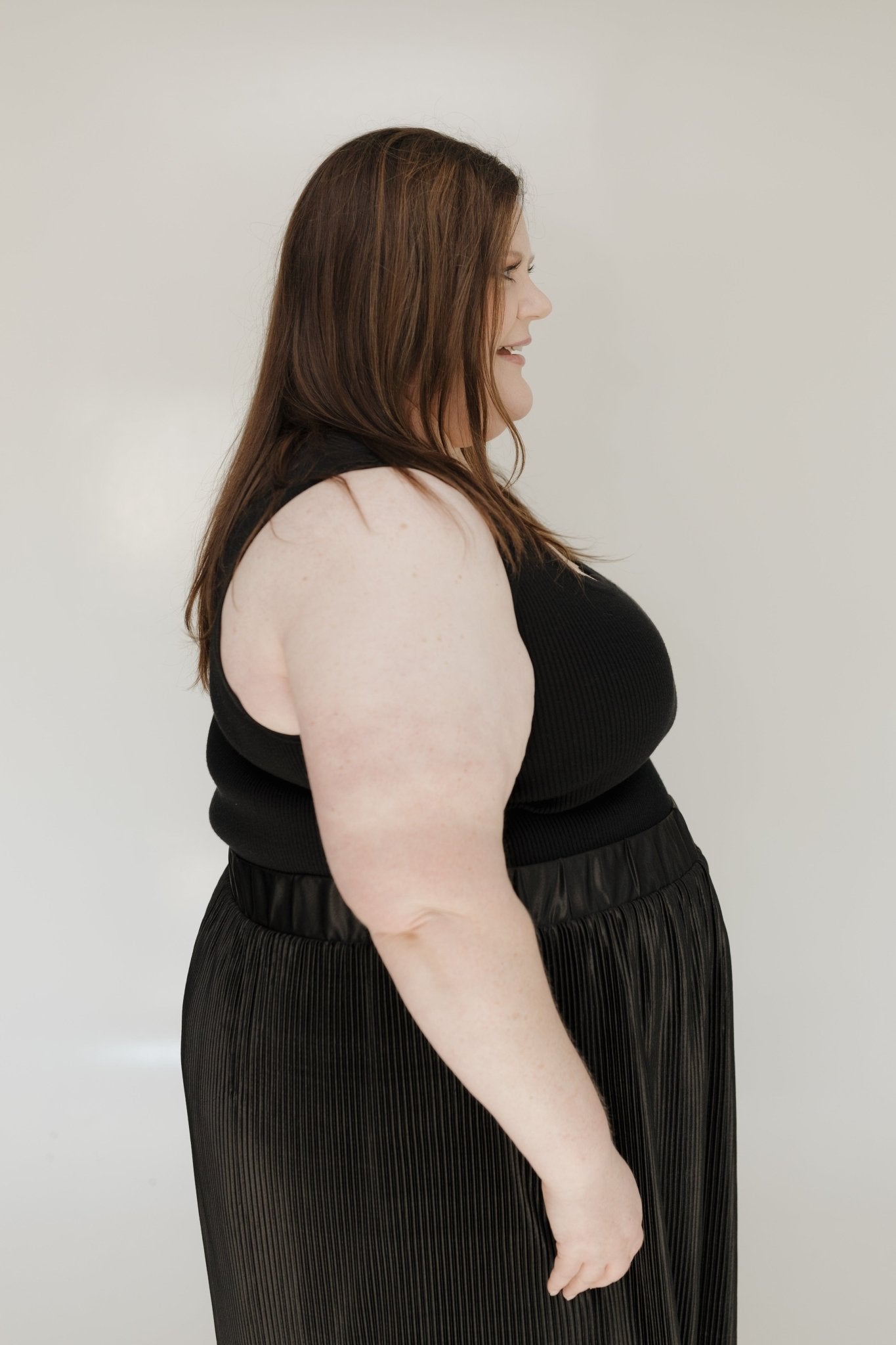 Made from a stretchy, medium-weight ribbed sweater knit, it drapes beautifully and offers all-day comfort. The wide straps are designed to keep your bra out of sight, while the classic black hue makes this a timeless, wear-anywhere piece.