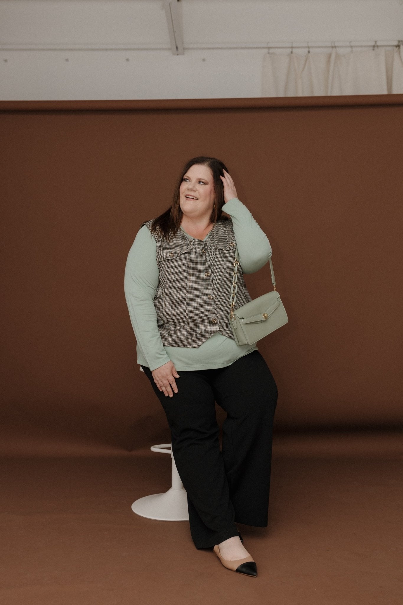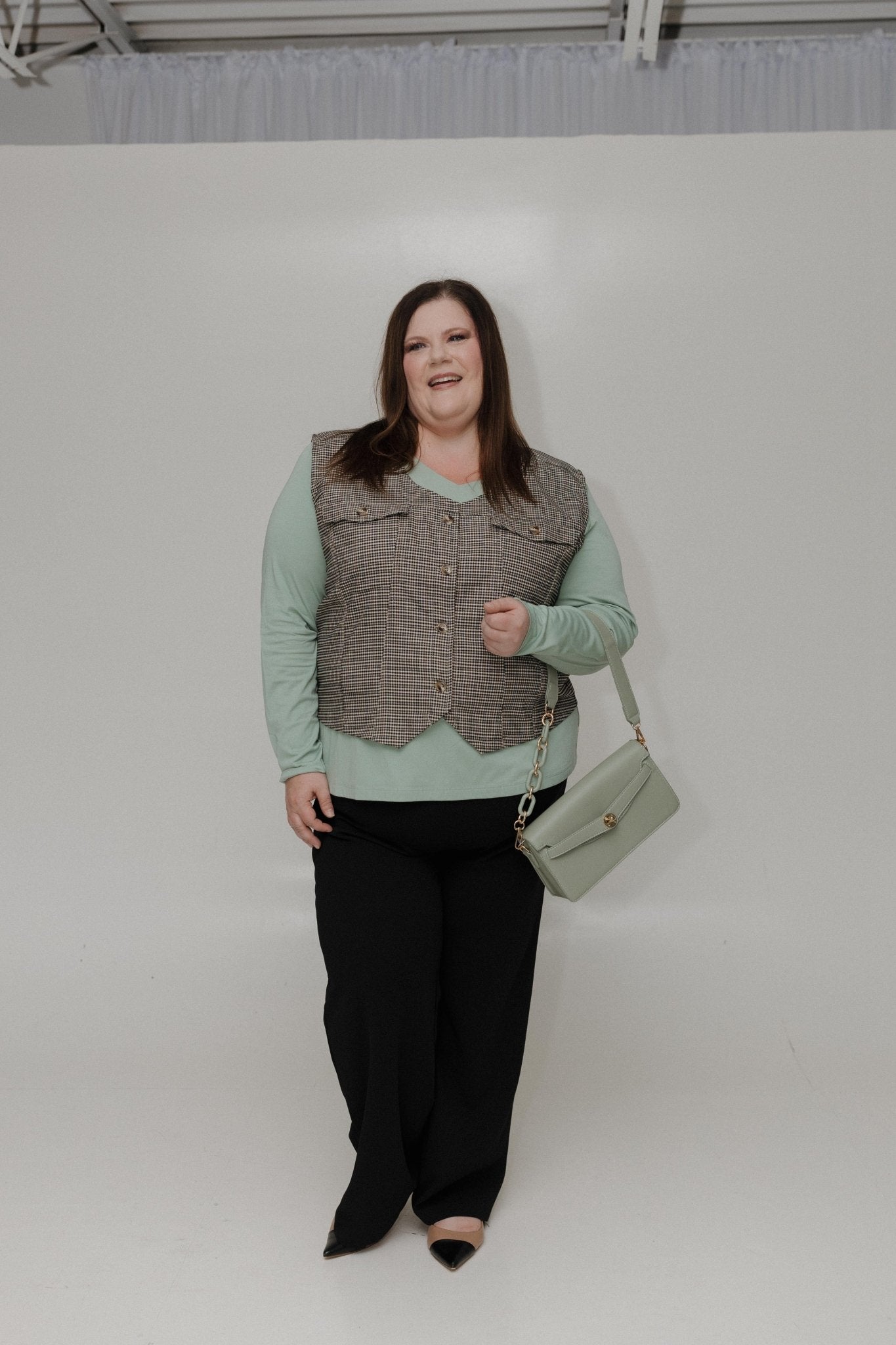 Pair with tailored trousers and heels for a polished office look, or tuck into high-waisted jeans with flats for a relaxed weekend vibe.