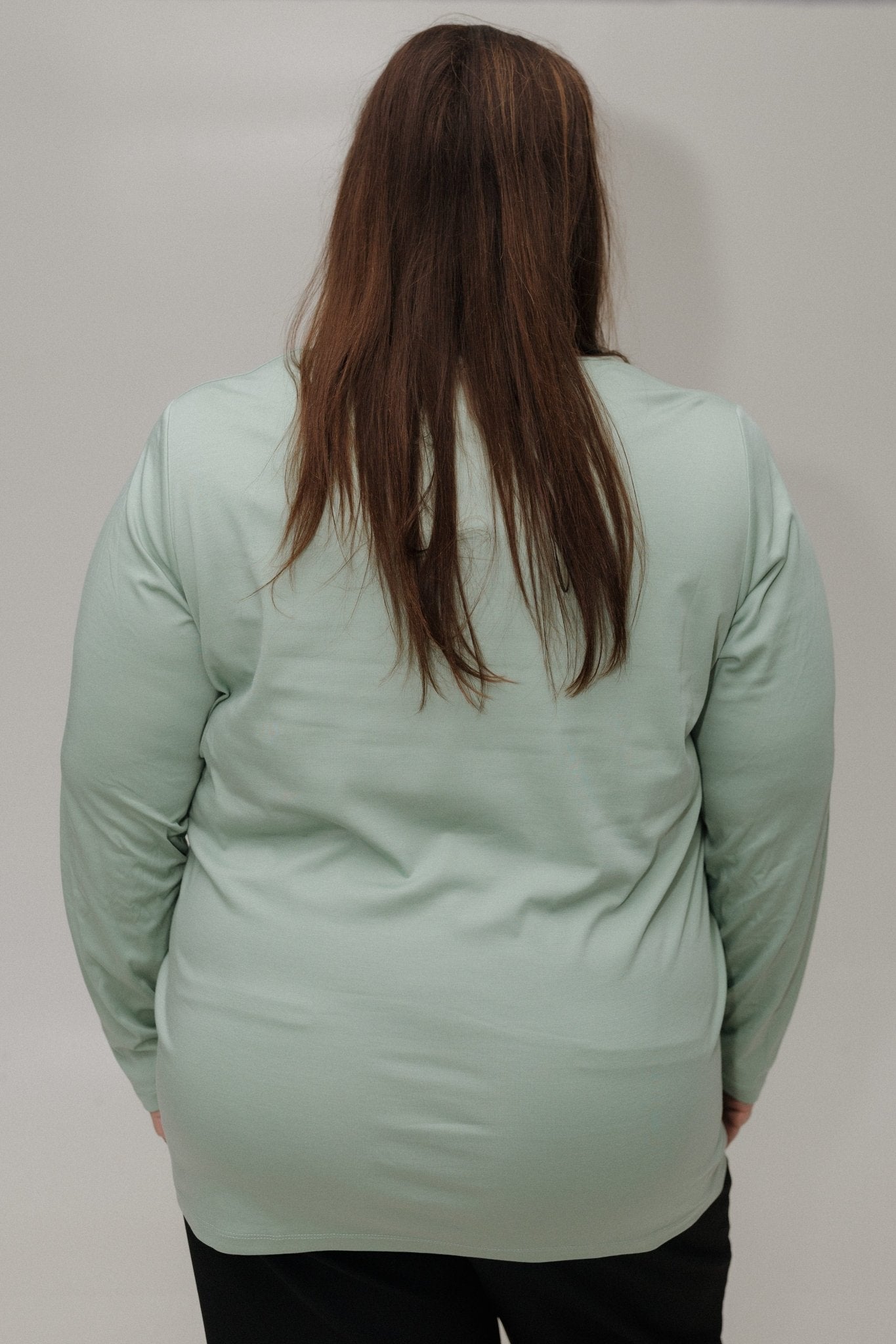 Elevate your everyday style with our Essential V-Neck Lightweight Blouse in Frosted Juniper, designed for mid and plus-size women who love comfort and elegance. Crafted from a luxurious blend of 60% viscose, 35% nylon, and 5% elastane, this blouse drapes beautifully and feels soft against the skin.
