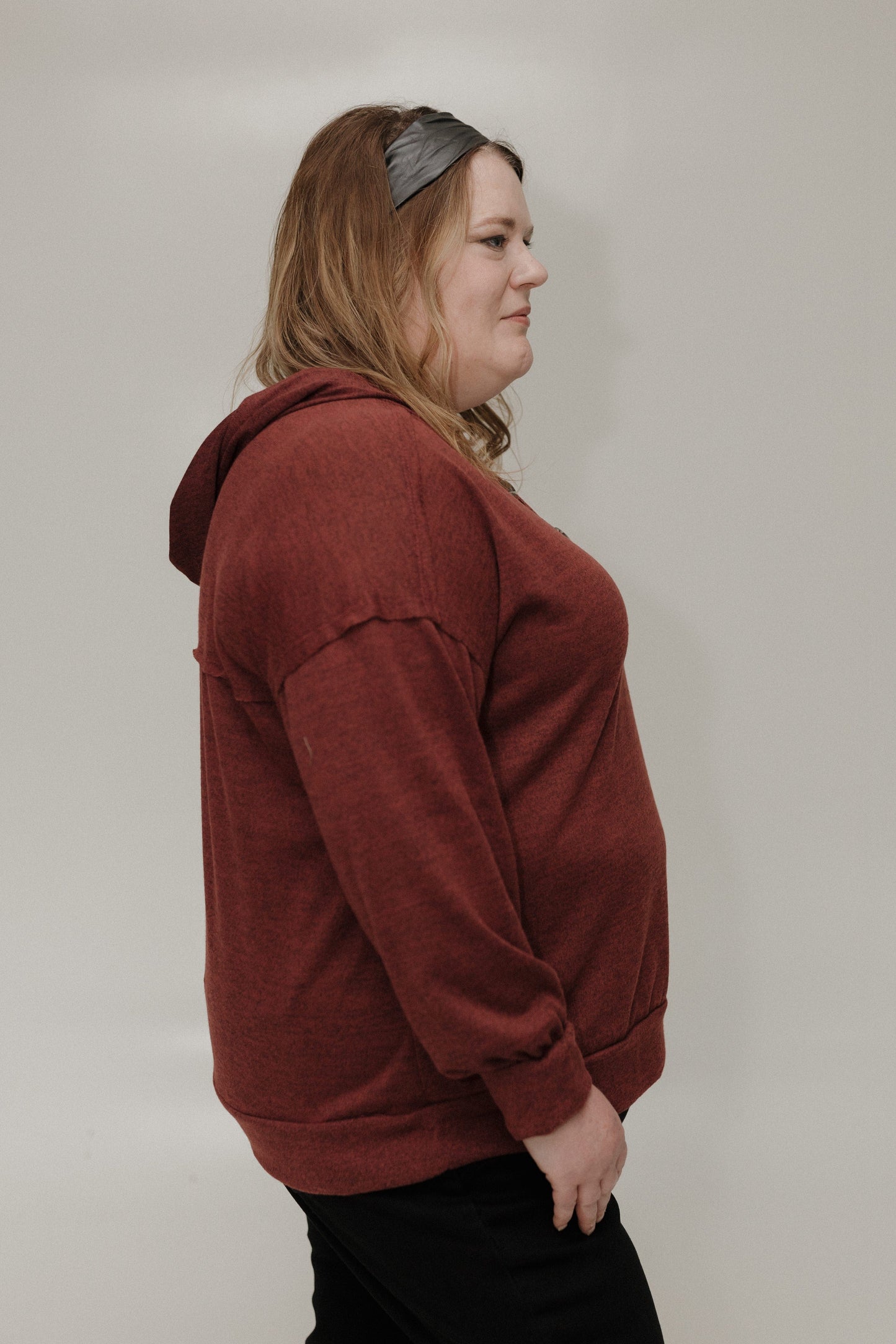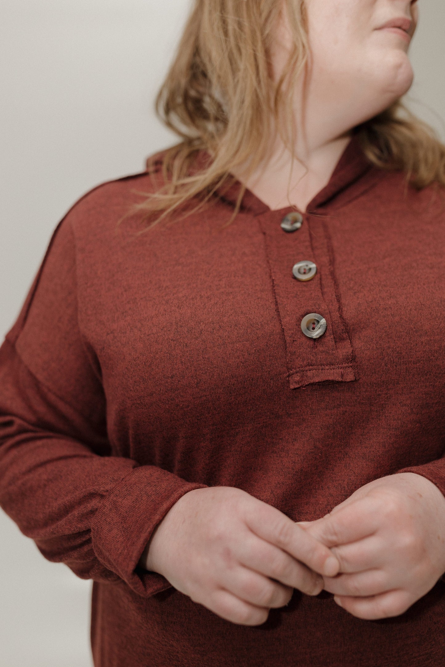 LIGHTWEIGHT BUTTON FRONT HOODIE IN WINE