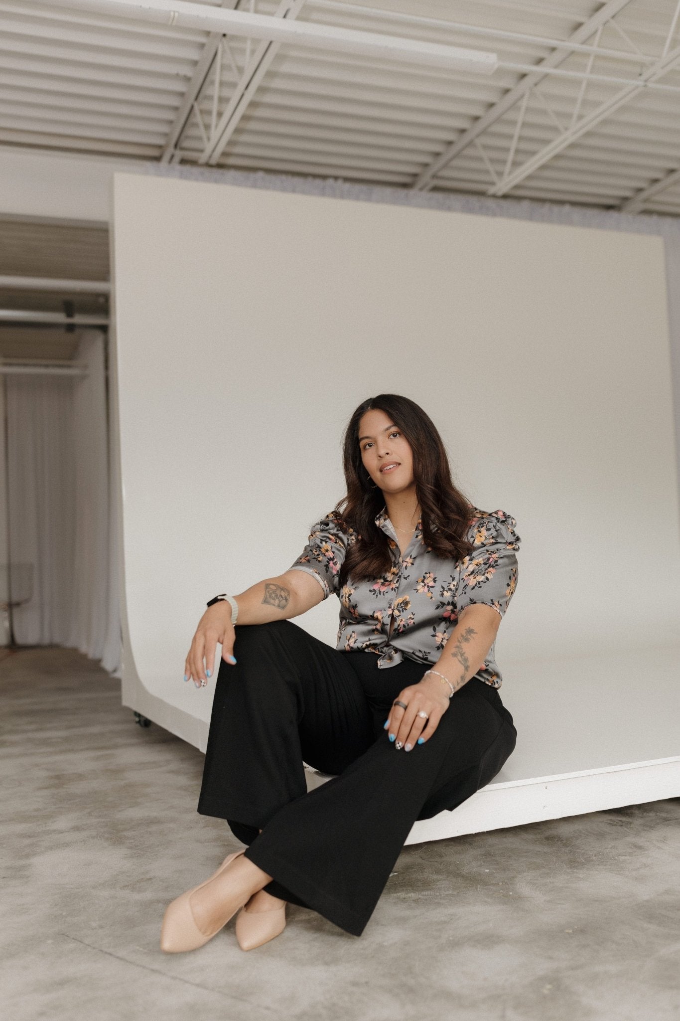 Elevate your career and casual wardrobe with the Puff Shoulder Silky Button-Up Blouse, a standout piece from Sioux Falls’ premier mid to plus size career wear boutique. Designed in a chic charcoal floral print with orange and pink accents, this silky-soft blouse offers both comfort and sophistication for work, weekends, and beyond.
