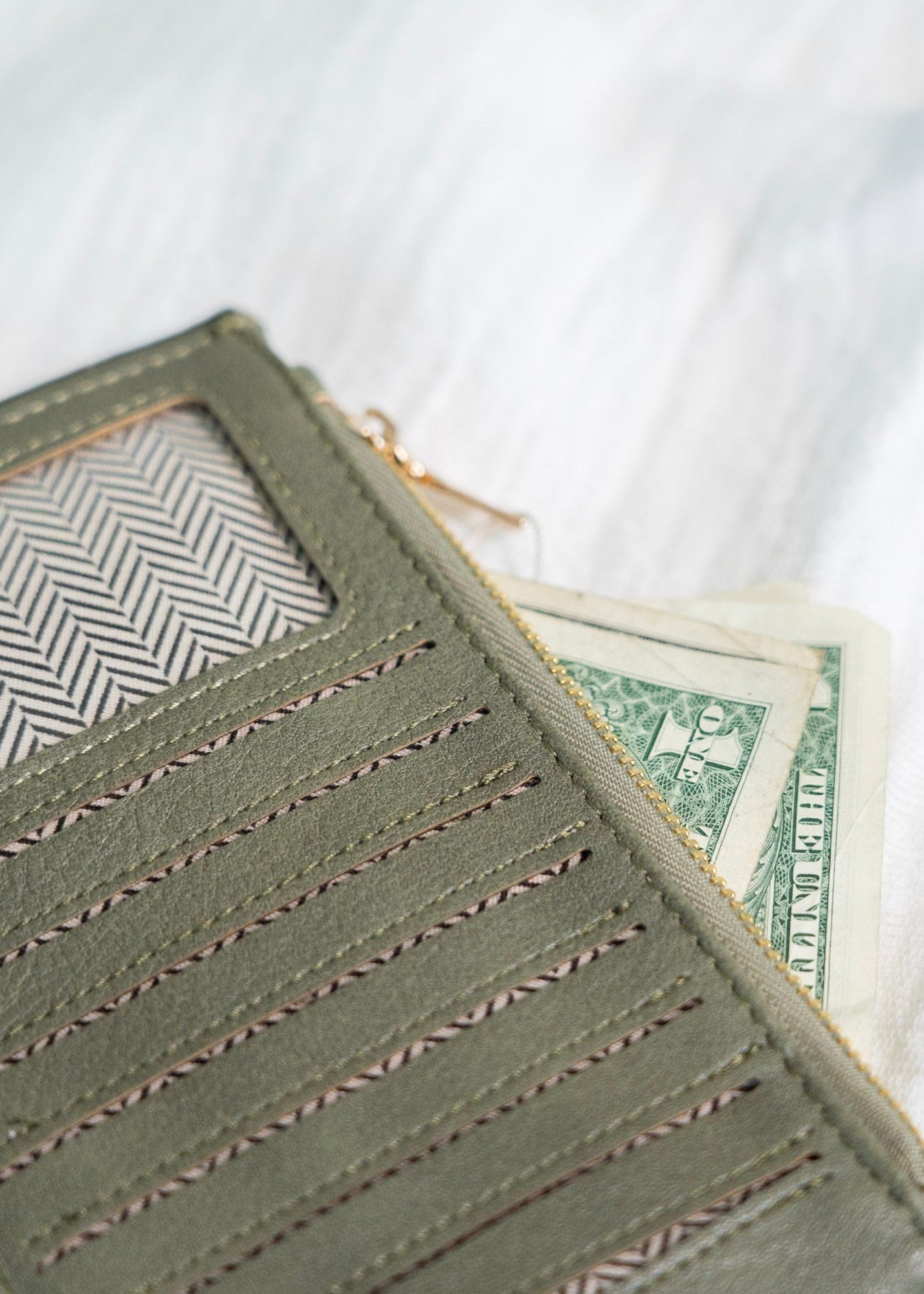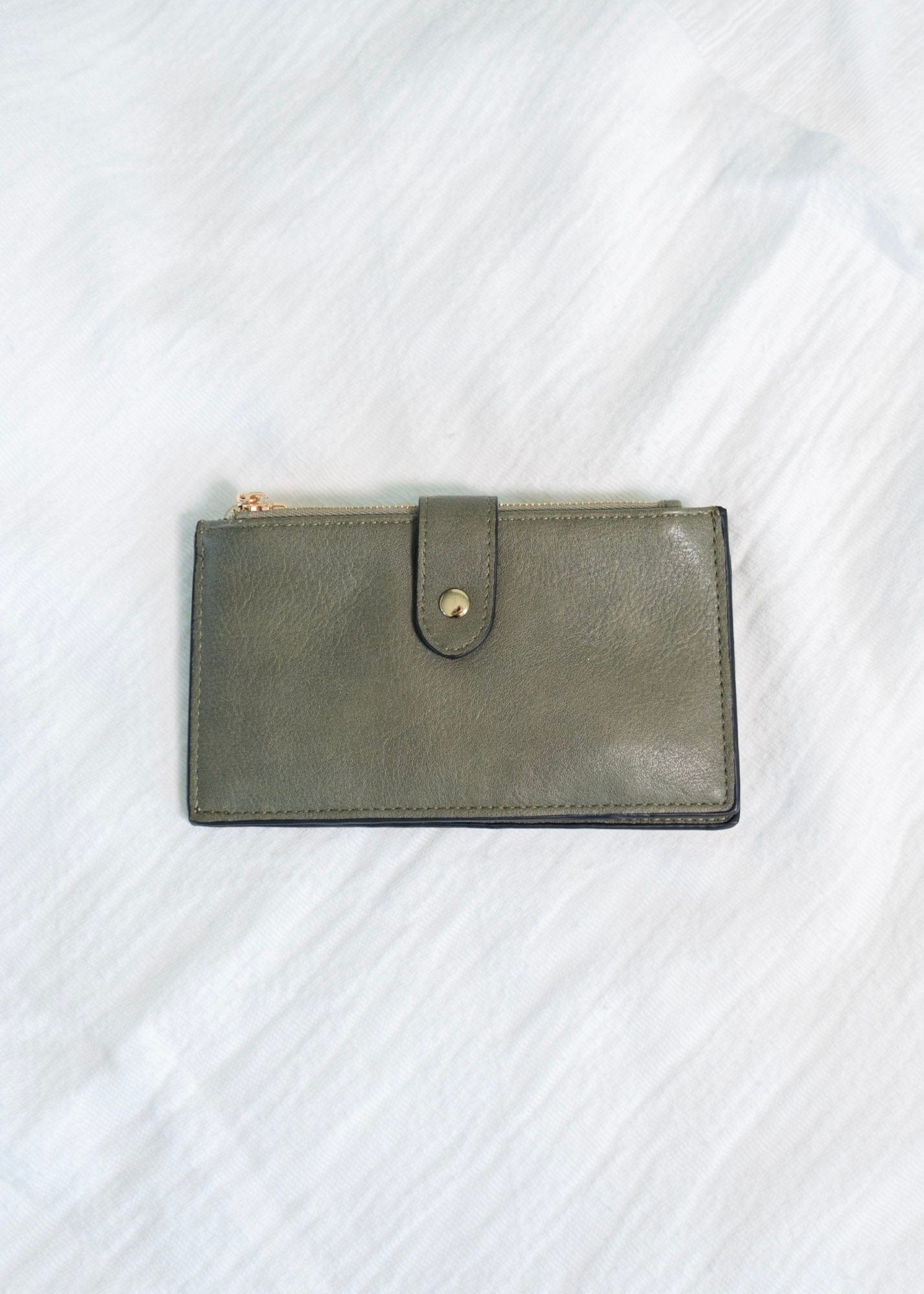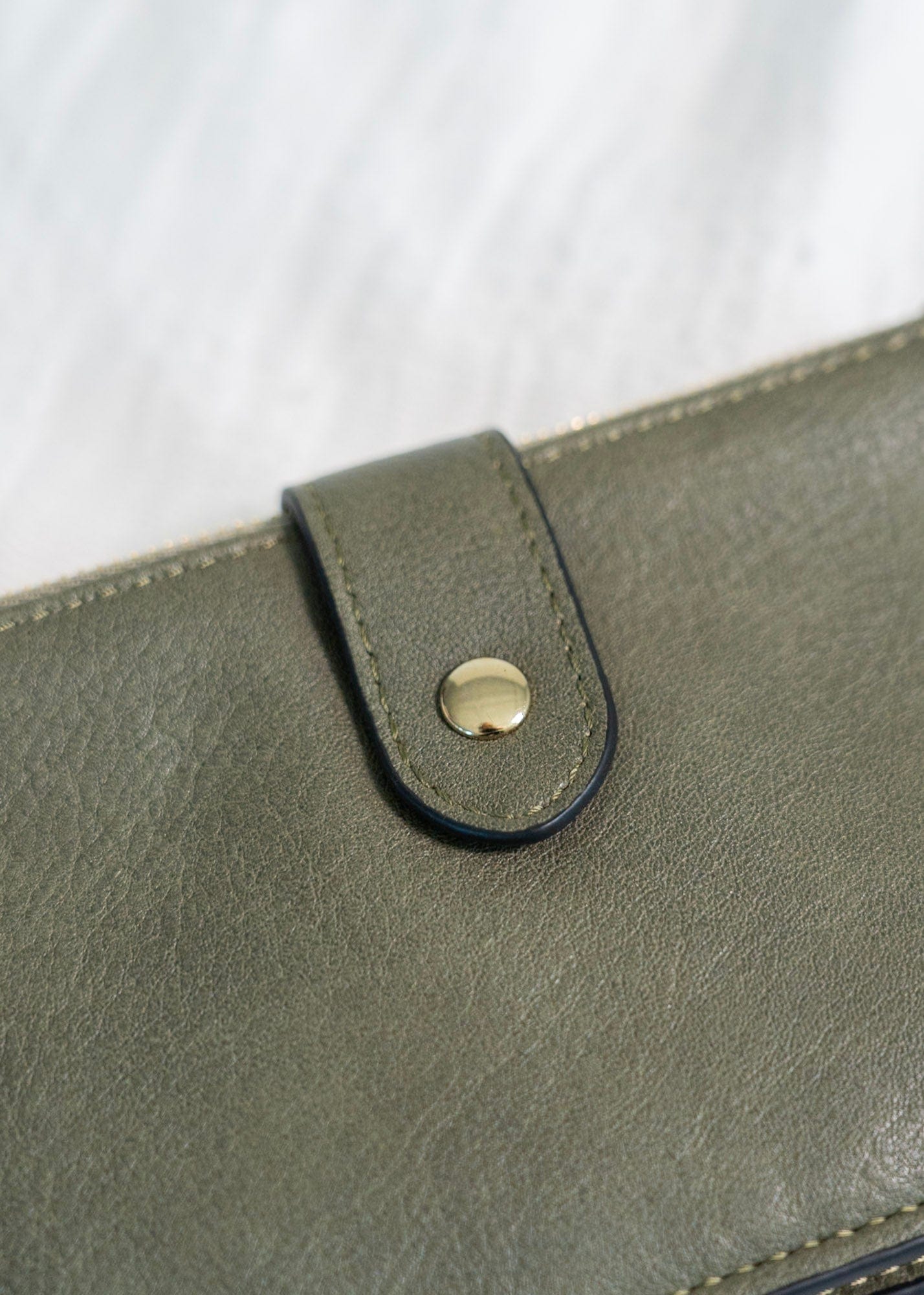 You'll make a statement with this army green wallet! This album style wallet has so much room for your cards and cash! It has two zipper pockets with a snap to keep the wallet closed. It is RFID protected! You will be protecting your personal data with the use of RFID blocking technology! A metal fiber mesh creates a "cage" around the chip on credit cards that radio waves cannot penetrate! Protect yourself and look cute all at the same time!