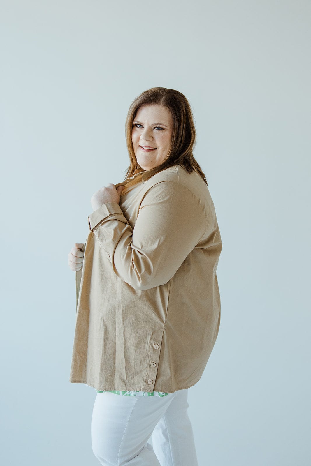 This classic blouse is perfect for days in the office, hitting the town with your friends, or doing all the fun outside activities! The lightweight, stretchy fabric will help you beat the heat. Also, warm you on a chilly morning or evening! Wear buttoned up as a shirt or left open to be a lightweight layering piece. The choice is yours, and versatility is everything! The sleeves hit at the wrist. Roll the sleeves for more of a versatile look! The collar and shape of this blouse are perfectly classic, and we cannot get enough of the beautiful simplicity! It's a longer blouse, so feel free to wear it with skinny jeans or even some faux leather leggings! Pair it with a dress. If you want to show off your curves, don't be afraid to tie them at the waist. Fits true to size. We suggest going with your typical. Stacey is wearing a size 18. Want more information about the model? Visit our Lovely Models page.