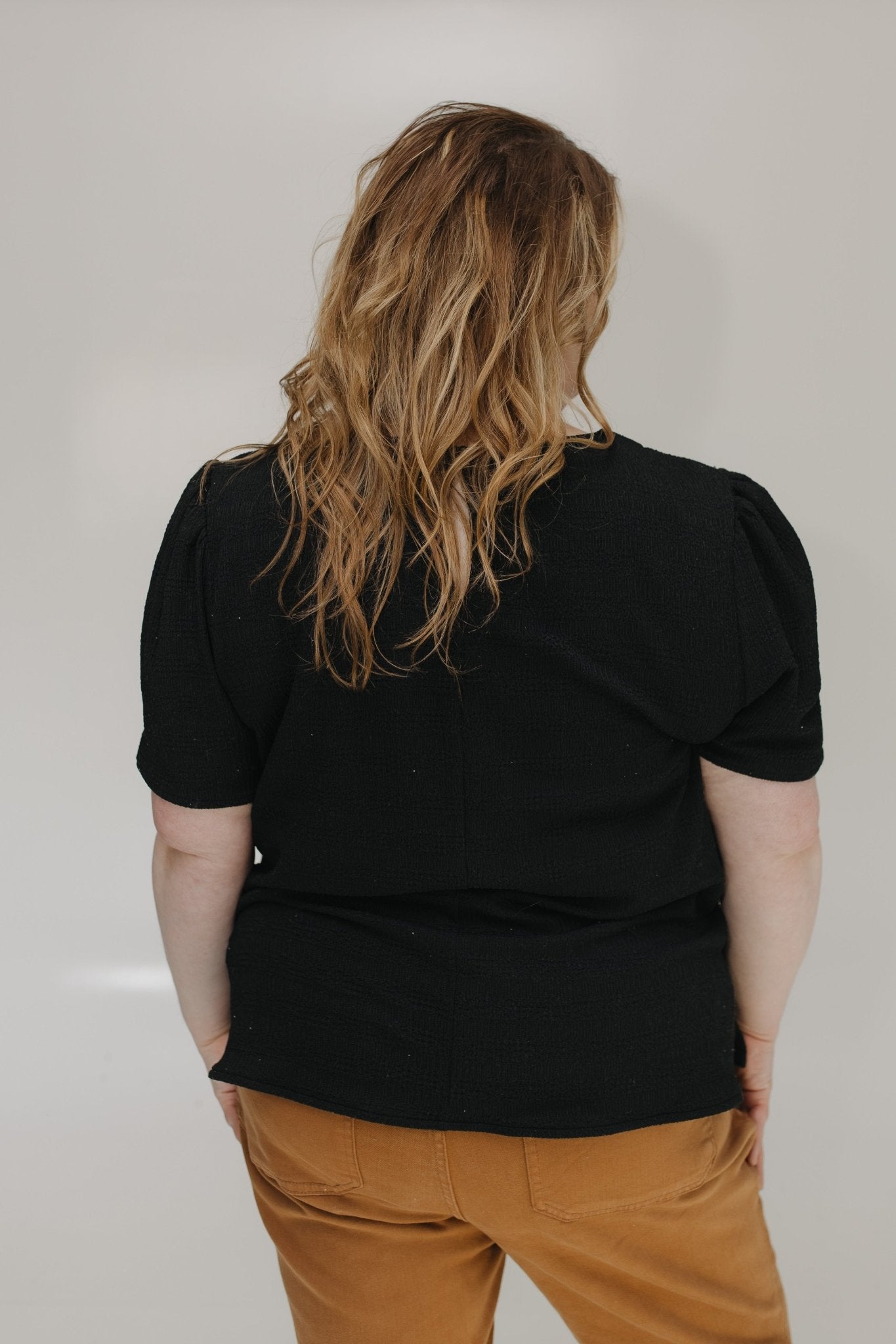 The Texture Puff Sleeve Blouse in Black is that perfect mix of polished and playful. Made with an ultra-lightweight, subtly textured fabric that drapes beautifully, this blouse features a flattering scoop neckline, charming puff sleeves, and a keyhole back detail for a little unexpected drama. The split hem adds movement, making it just as cute untucked as it is styled with a front tuck.